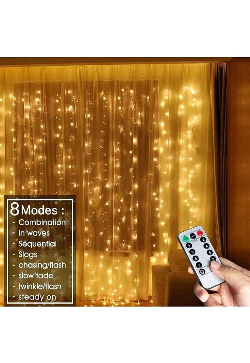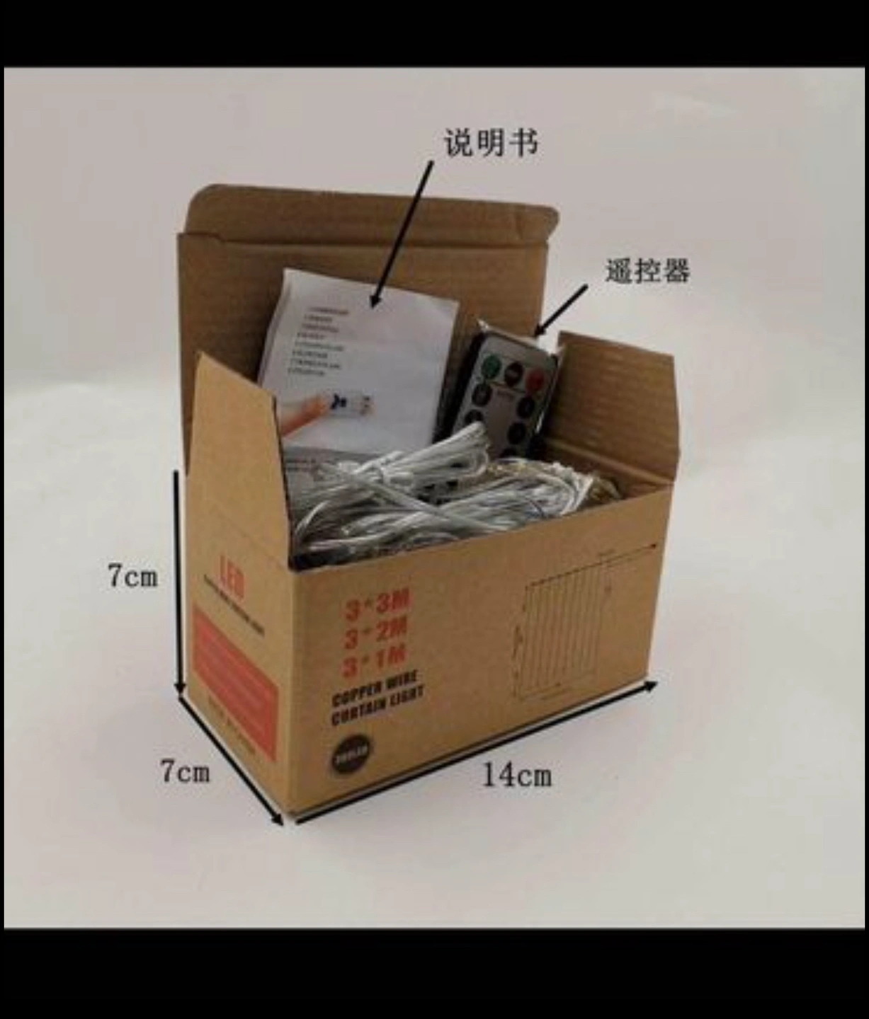 1. curtain lights is with a 1.5M/4.92ft long leading wire, 3M/9. 84ftx 3M/9.84ft after unfolded, and 300 Ied bulbs in 10 strings, Each string is spaced about0.33M/0.98ft apart with another.
