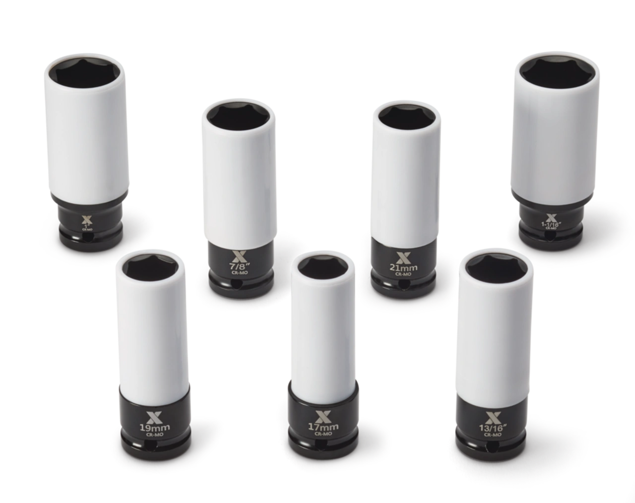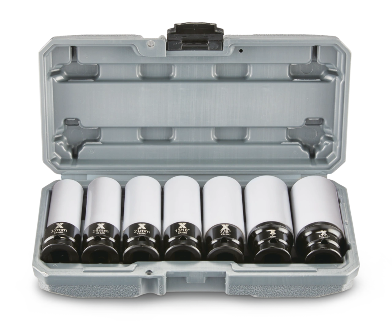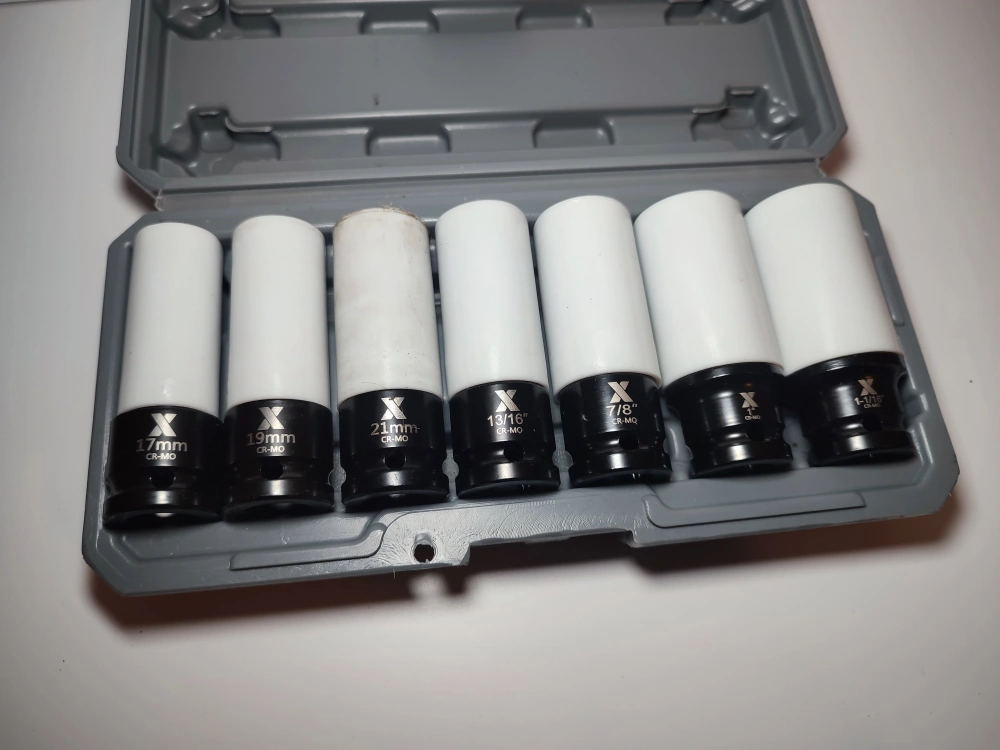 The MAXIMUM Wheel Protector Deep Impact Socket Set, 7-pc will ensure that your impact tools are equipped for rugged automotive repair jobs. Boasting top-performing impact capabilities, this impact socket set is ideal for use in lug nut applications with adaptors or extensions. Crafted from heat-treated chrome-molybdenum steel, this socket set offers superior corrosion resistance, as well as the ability to withstand high-impact torque applications. This mechanic tool set is detailed with laser-etched size markings for easy visibility and size selection. Anti-rounding radius corners spread force over a large contact area, extending the life of fasteners while using this tool kit. Plastic protective sleeves prevent the scratching of wheel rims. This 1/2-in drive tool set contains 7 deep impact sockets in SAE and metric sizes. Store all of the parts in the convenient carrying case. With a lifetime warranty, these tools offer ample longevity.