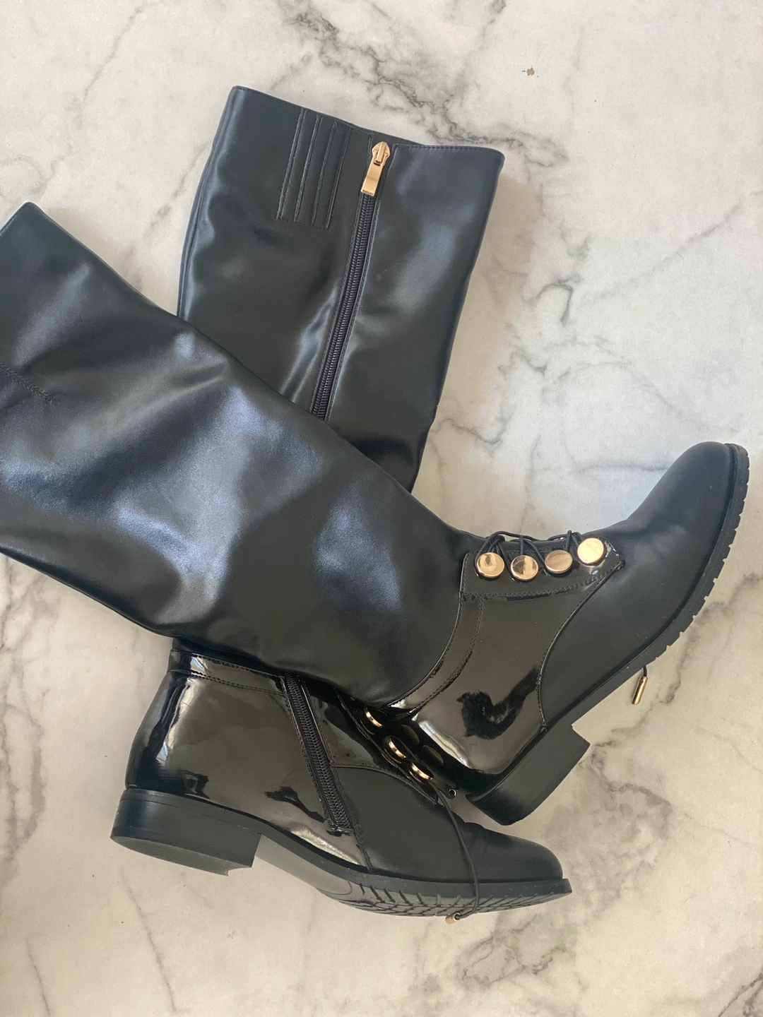 Contemporary boots with faux leather, Popular and trendy on Tiktok. I bought them 2 years ago and have wore them only twice.