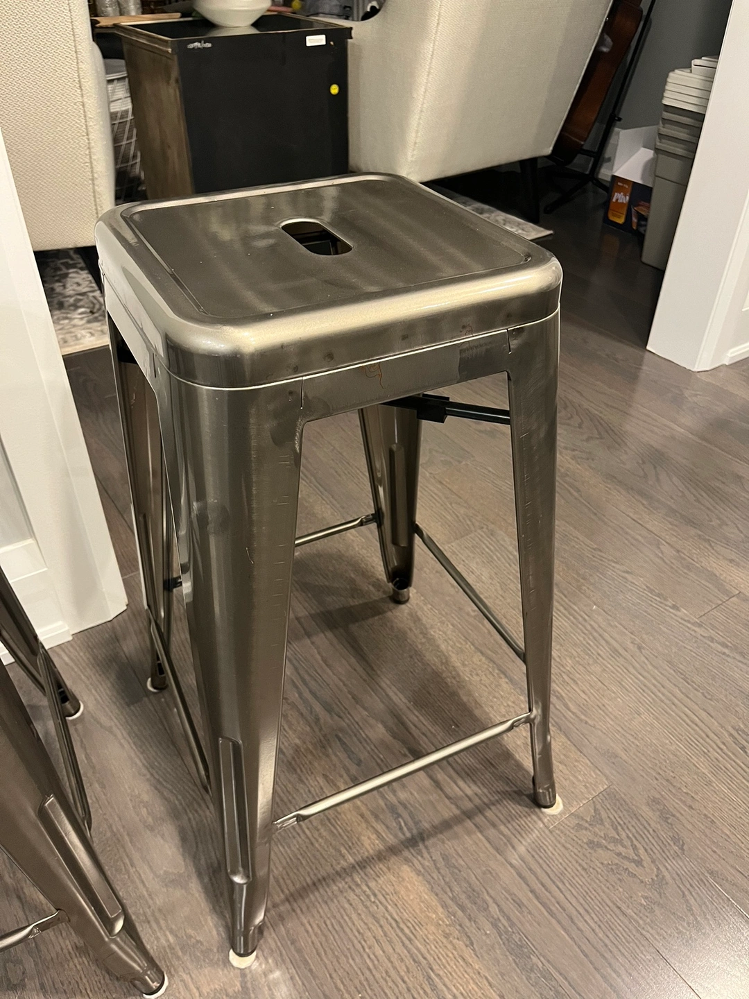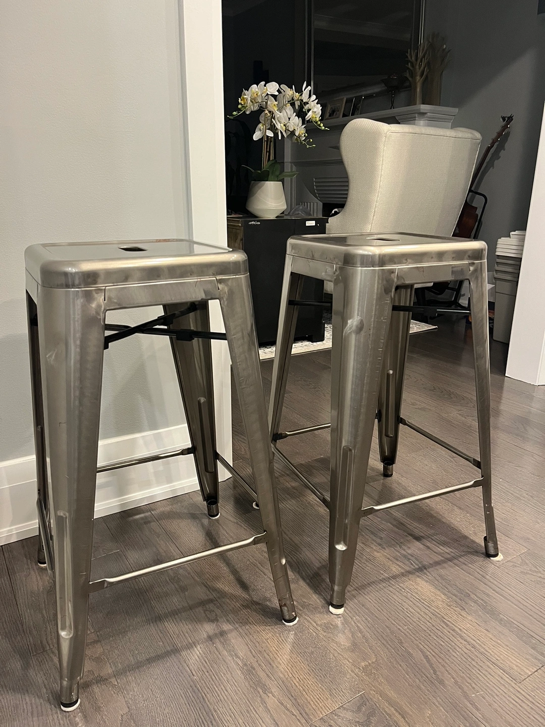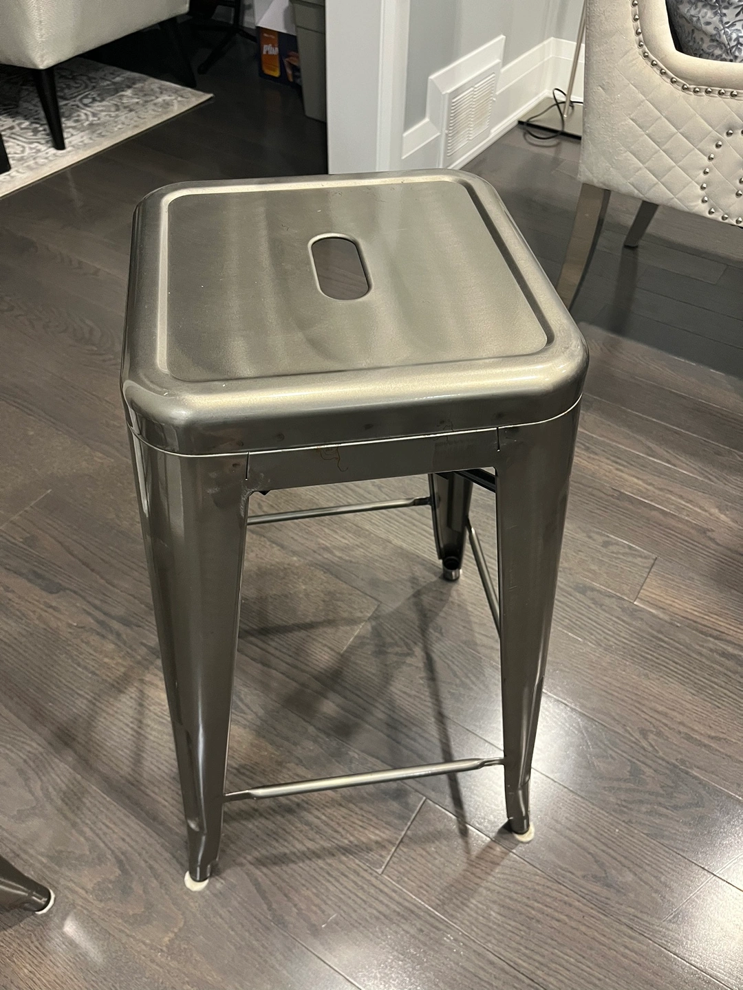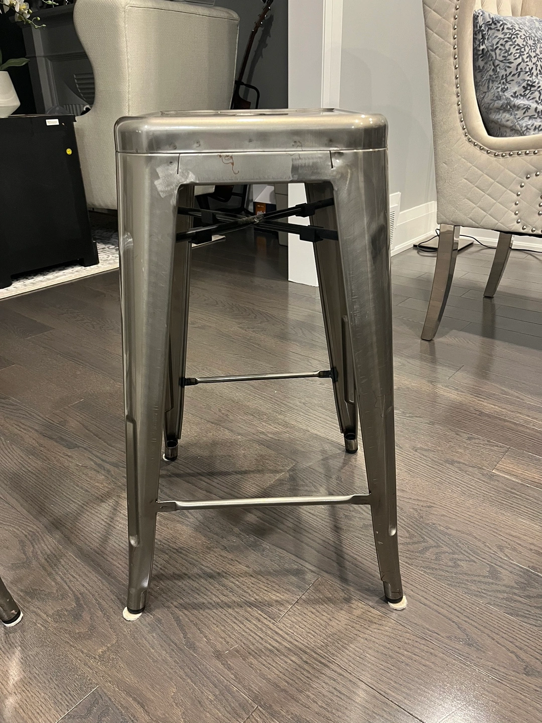 "Sturdy, secure, and stylish in its color palette, the barstool exudes sophistication."