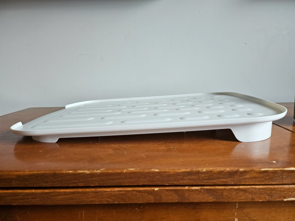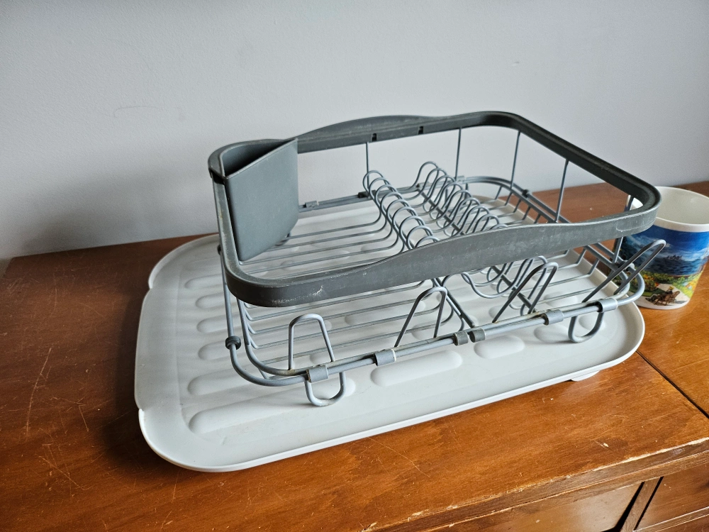 It's a handy dish rack that holds a surprising amount for being so tidy and compact!