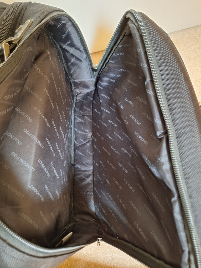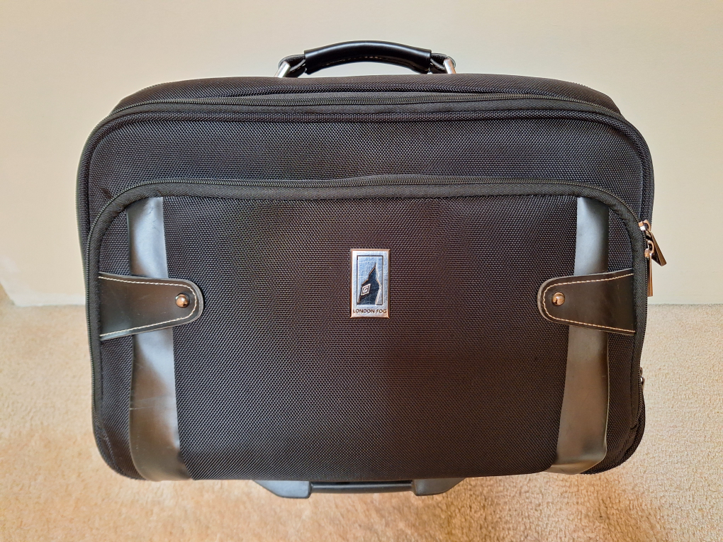Used London Fog roller laptop bag. Has 4 compartments, no rips or stains in the fabric. Only defect are the rips in the leather part of the handles. Otherwise this laptop bag is in great condition! NSNP home, prompt pick up, first come first served