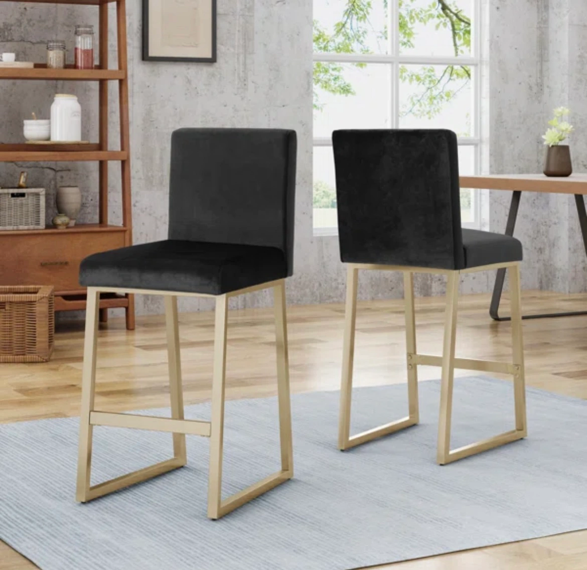 Black Bar Stools with Gold Legs (Set of 2)