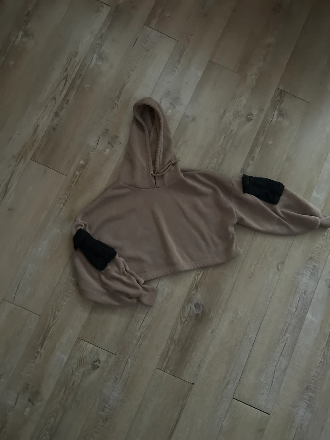 Brown Cropped Hoodie and Jogger Set with Black Pockets