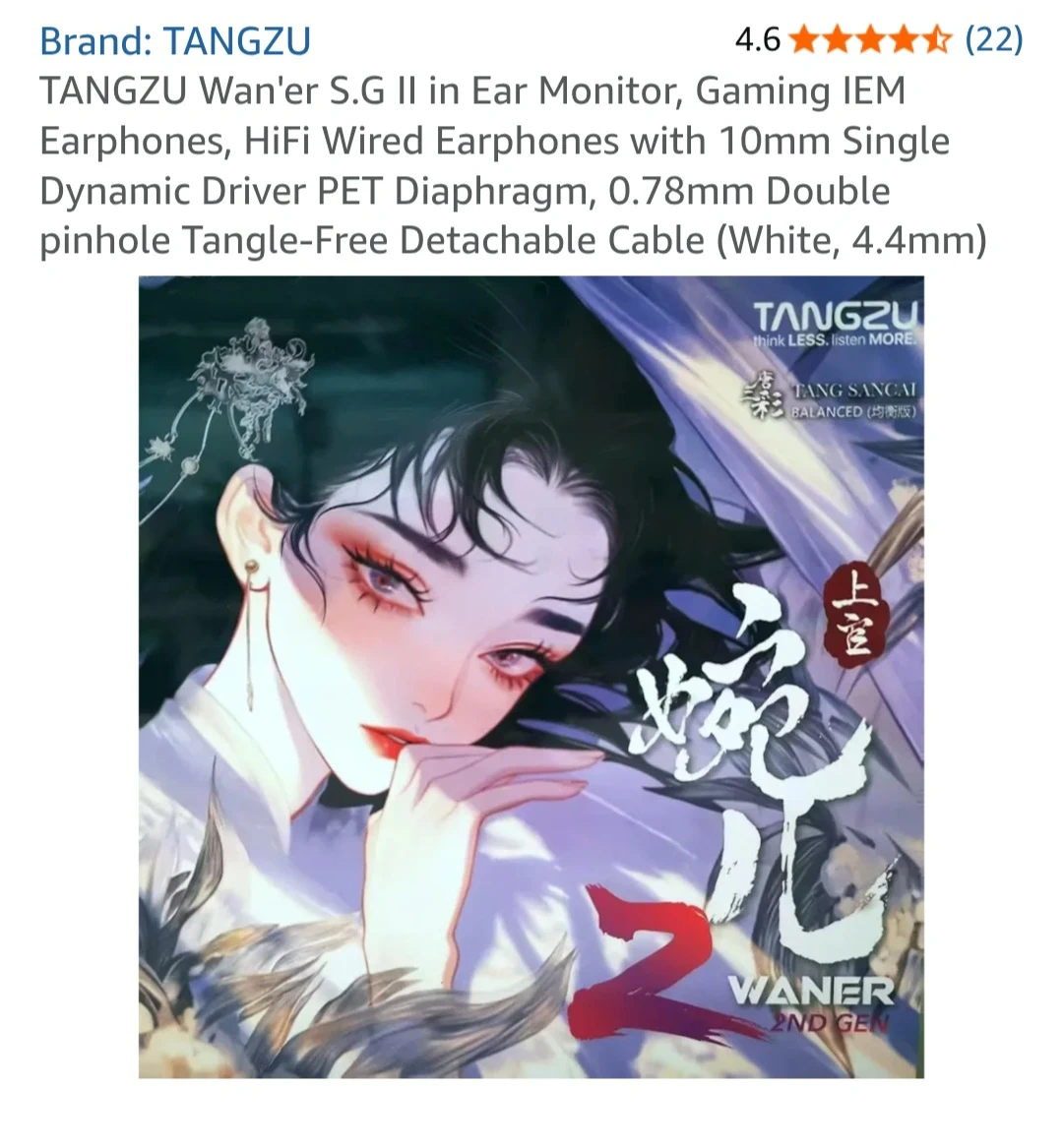 TANGZU Wan'er S.G II in Ear Monitor, Gaming IEM Earphones, HiFi Wired Earphones with 10mm Single Dynamic Driver PET Diaphragm, 0.78mm 2-Pin Tangle-Free Detachable Cable (White, 3.5mm with Mic)