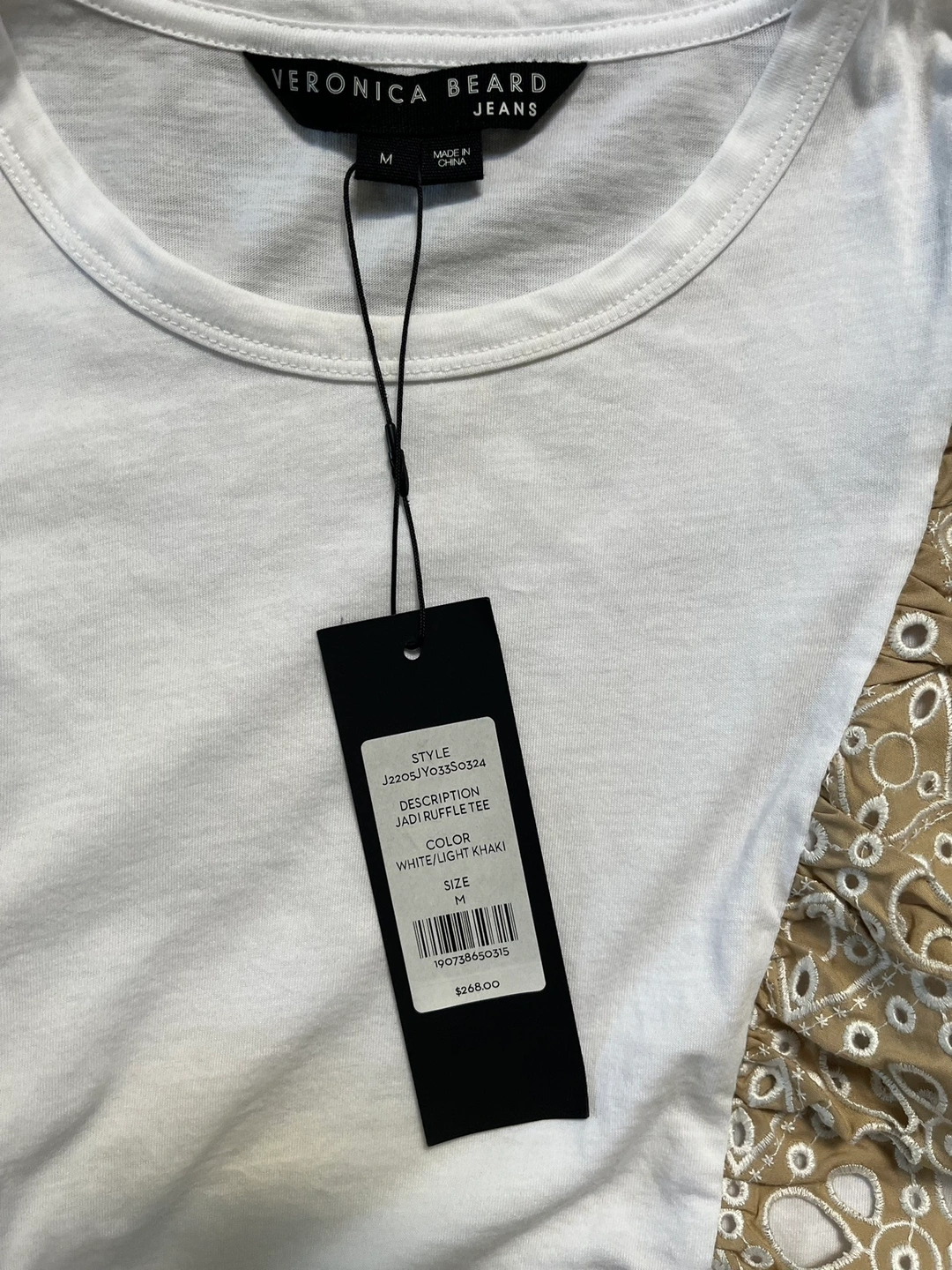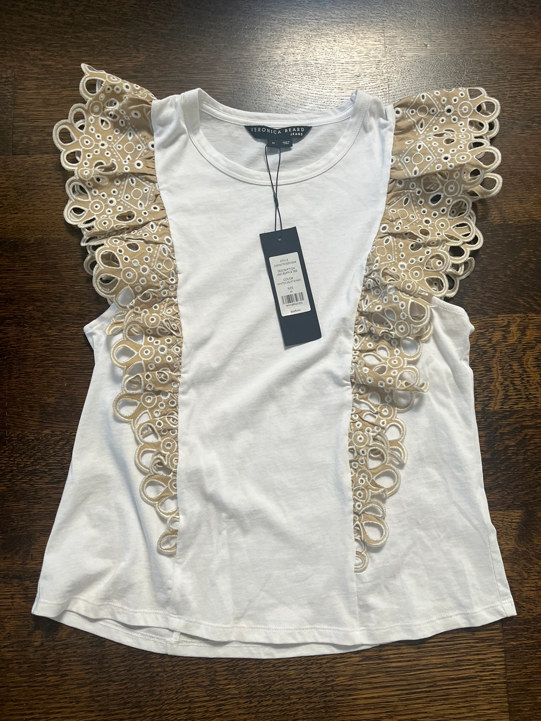 Beautiful new with tags Veronica Beard top white with beige detail. Soft cotton great buy.