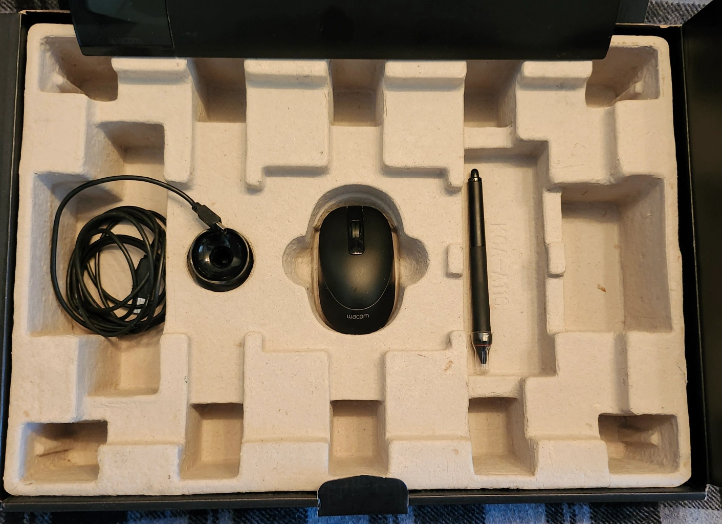 Wacom, intuos 4 tablet, used in good condition , includes nibs, pen and mouse, will plug in and show that tablet, mouse and pen are active and working, no fancy demos.
