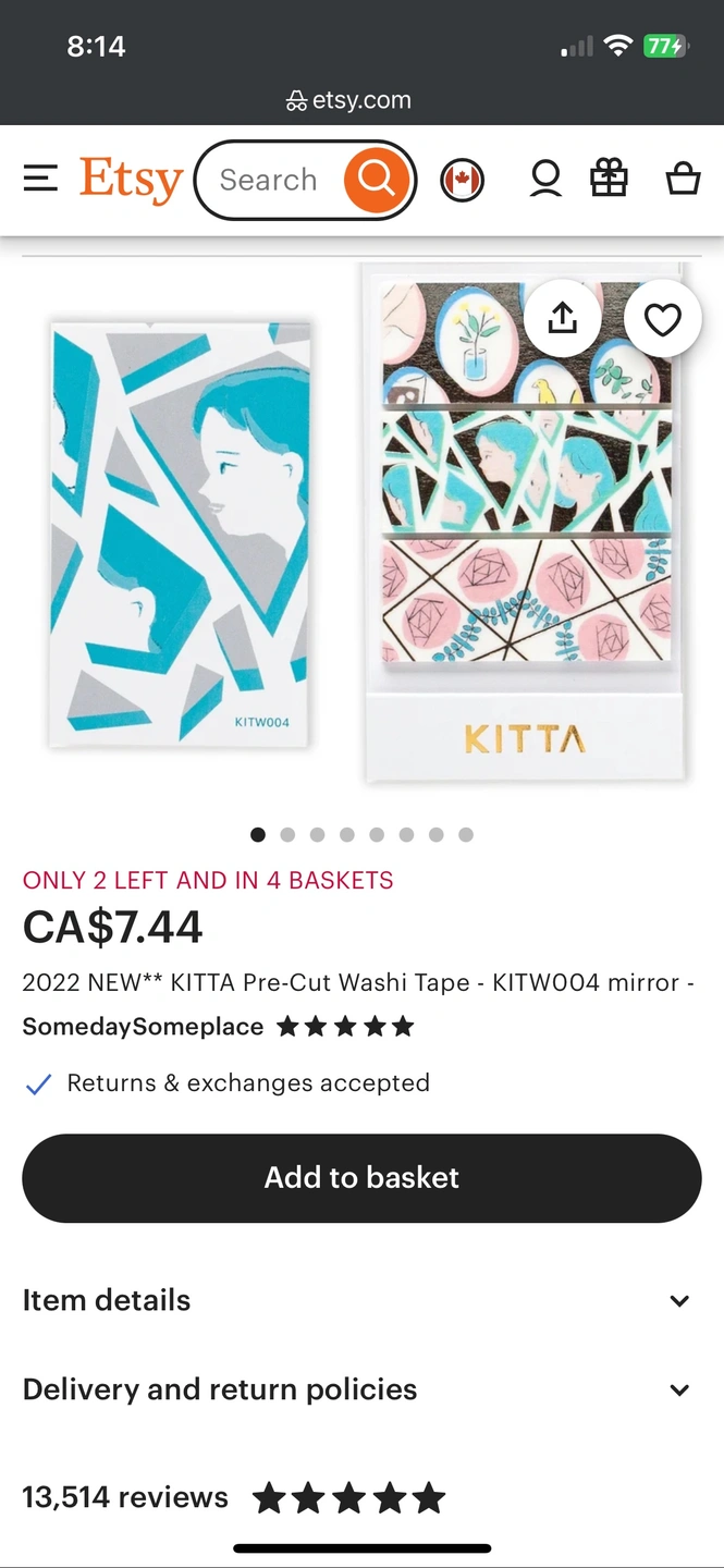 Pre-tax price on Etsy: 7.44CAD (excluding shipping fee 12.88CAD)