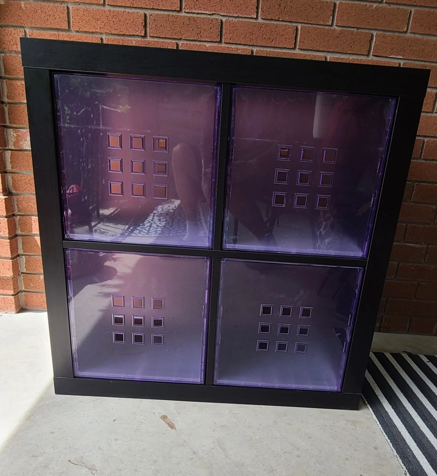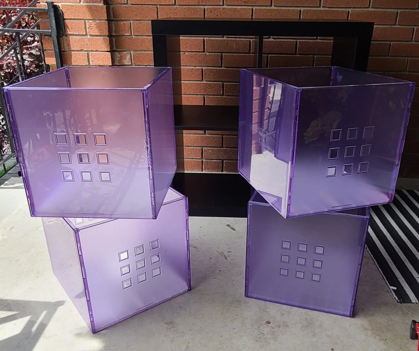 Gently used and comes with 4 clear acrylic purple storage baskets. Baskets alone cost me $60.