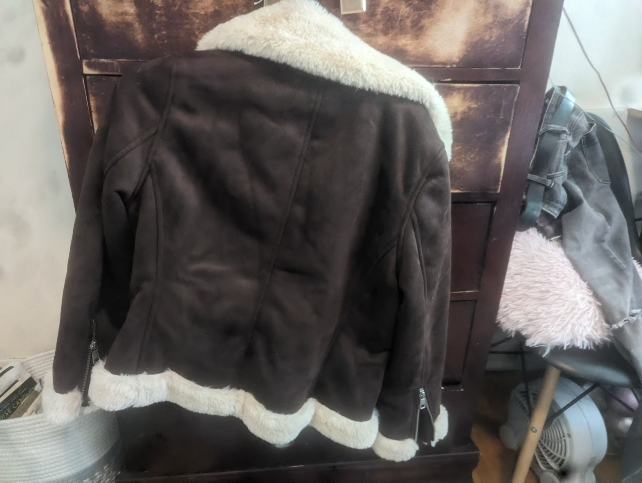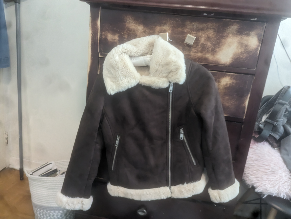 Brand new, without tags, faux suede, extremely soft lining jacket. Side zipper. Two inside pockets. Too small so selling
