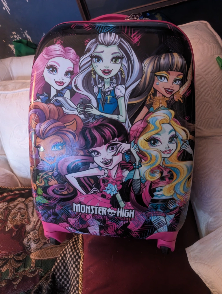 Monster high rolling suitcase. 18 in. x 12 in. x 9 in every little girl's dream. I paid $120 for it but it's no longer needed