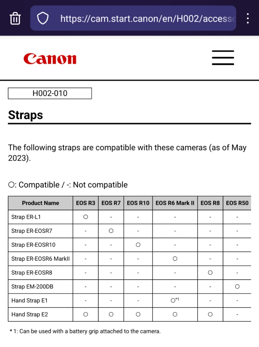 This strap is only compatible with Canon EOS R7, as shown in the chart (3rd pic).