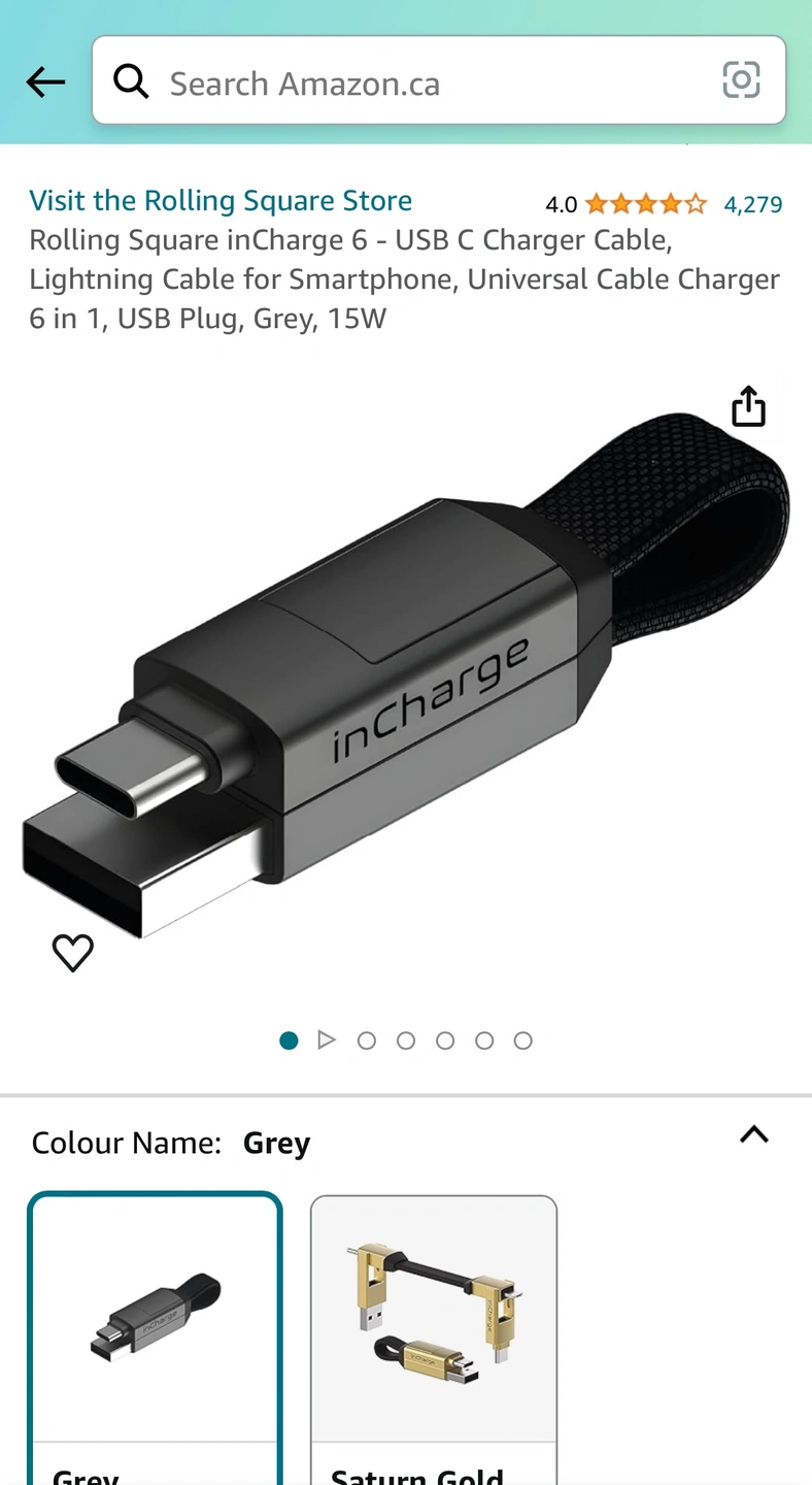 Rolling Square inCharge 6 - USB C Charger Cable, Lightning Cable for Smartphone, Universal Cable Charger 6 in 1, USB Plug, Grey, 15W