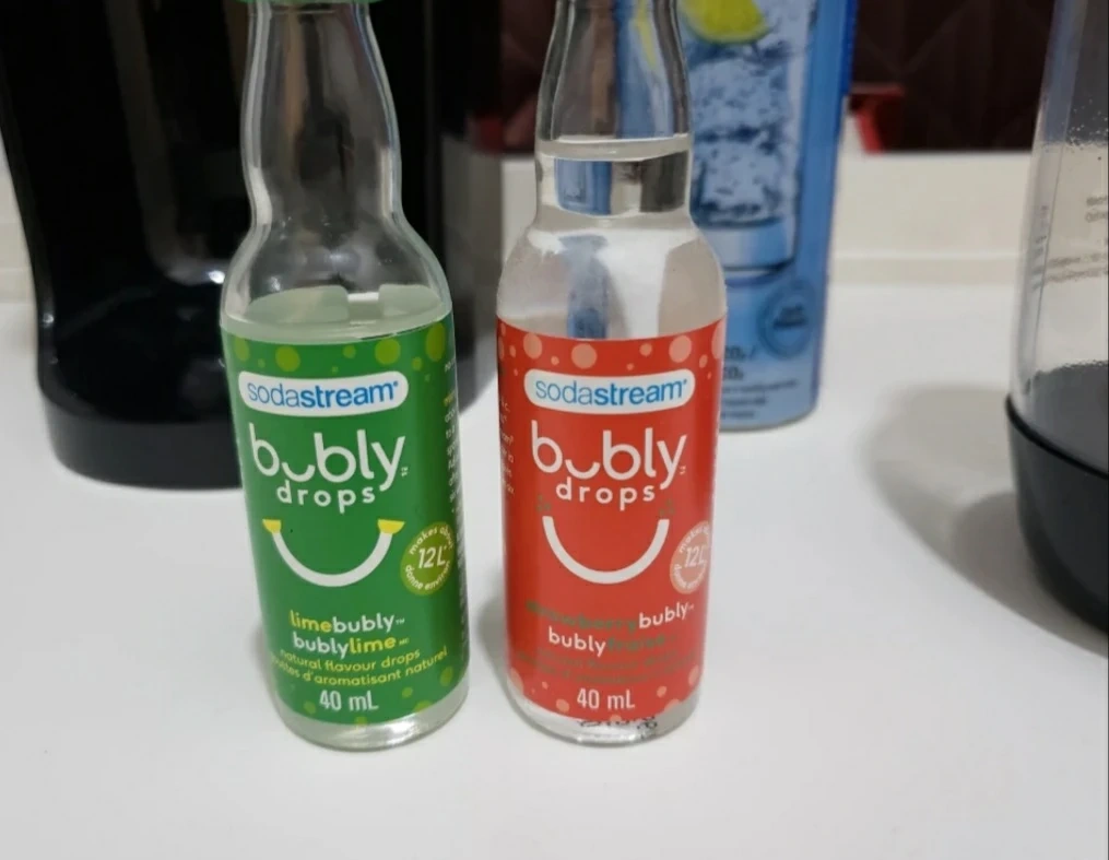 >2x syrups to create flavour water: lime, strawberry