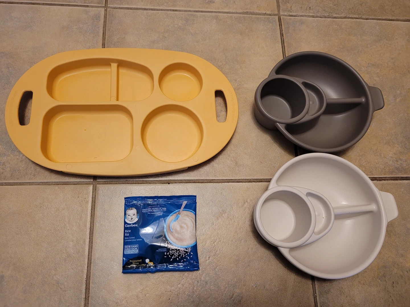 Baby feeding plates and Gerber Rice baby cereal #freecycle