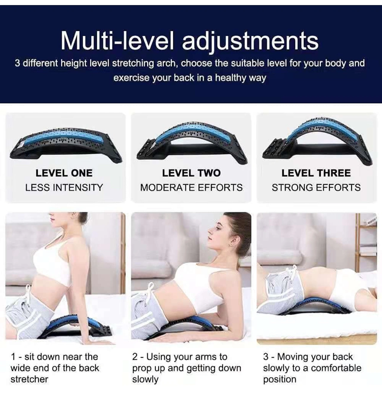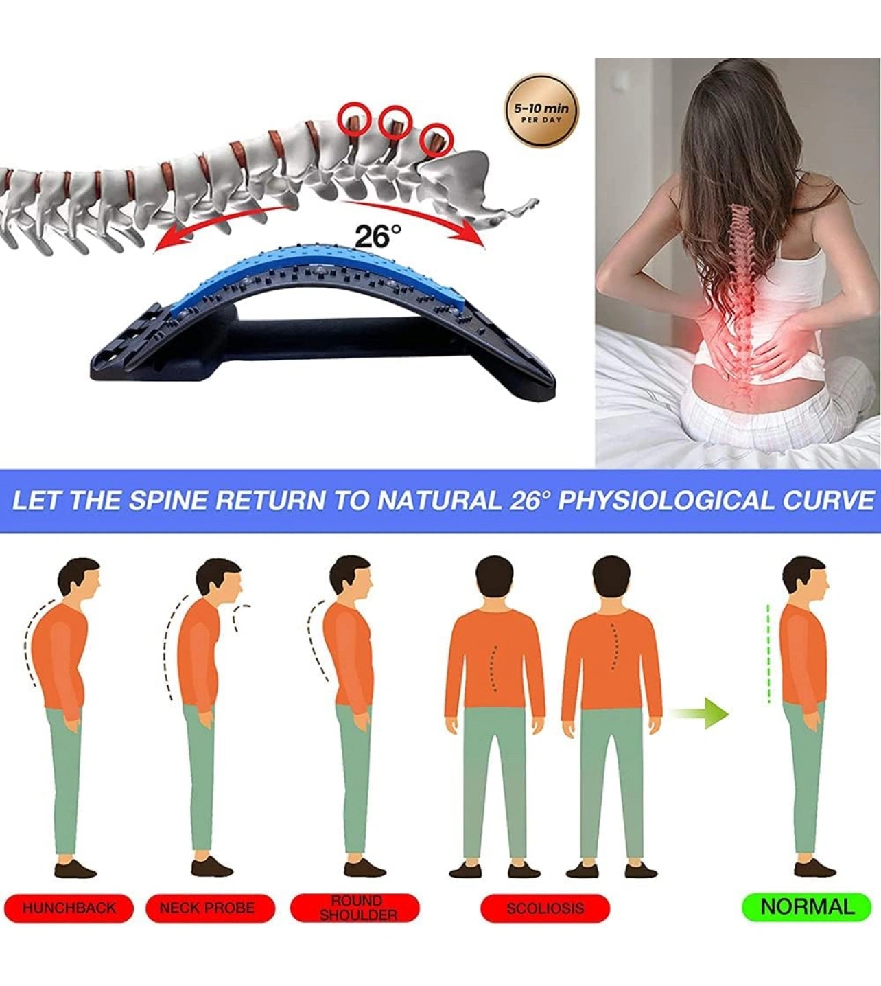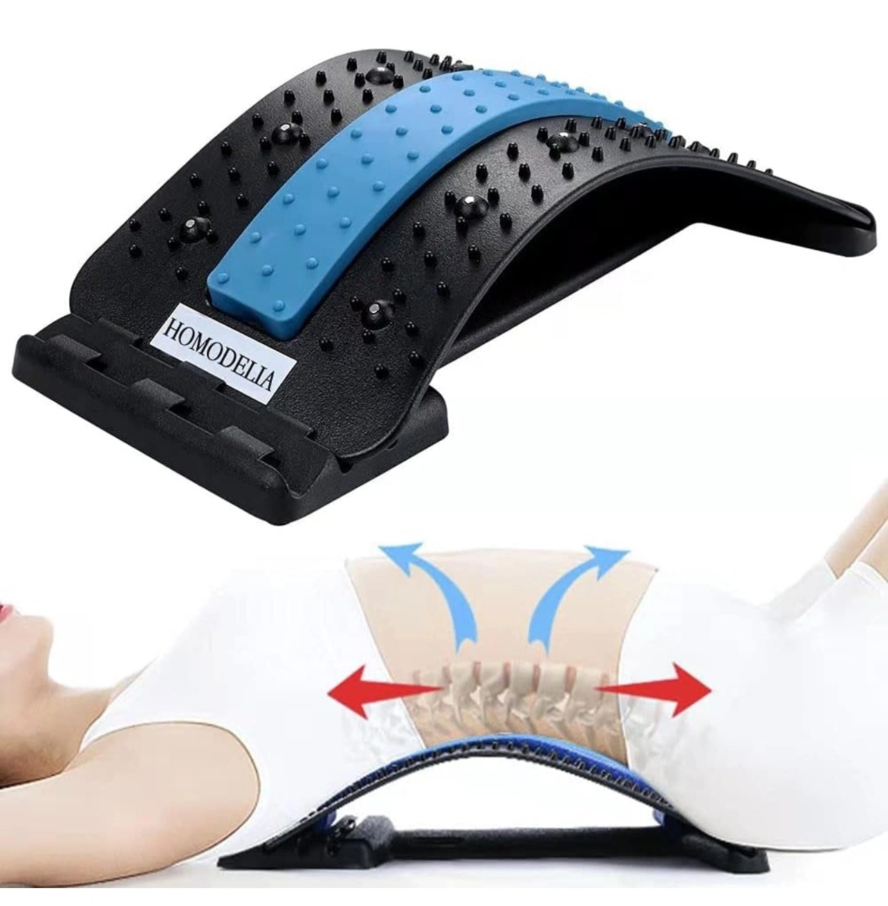 Adjustable Back Stretcher, Lumbar Support Relaxation, Pain Relief for Herniated Disc, Sciatica, Scoliosis, Lower and Upper Back, with Acupressure Points massage, Back Massager for Yoga Fitness Stretch