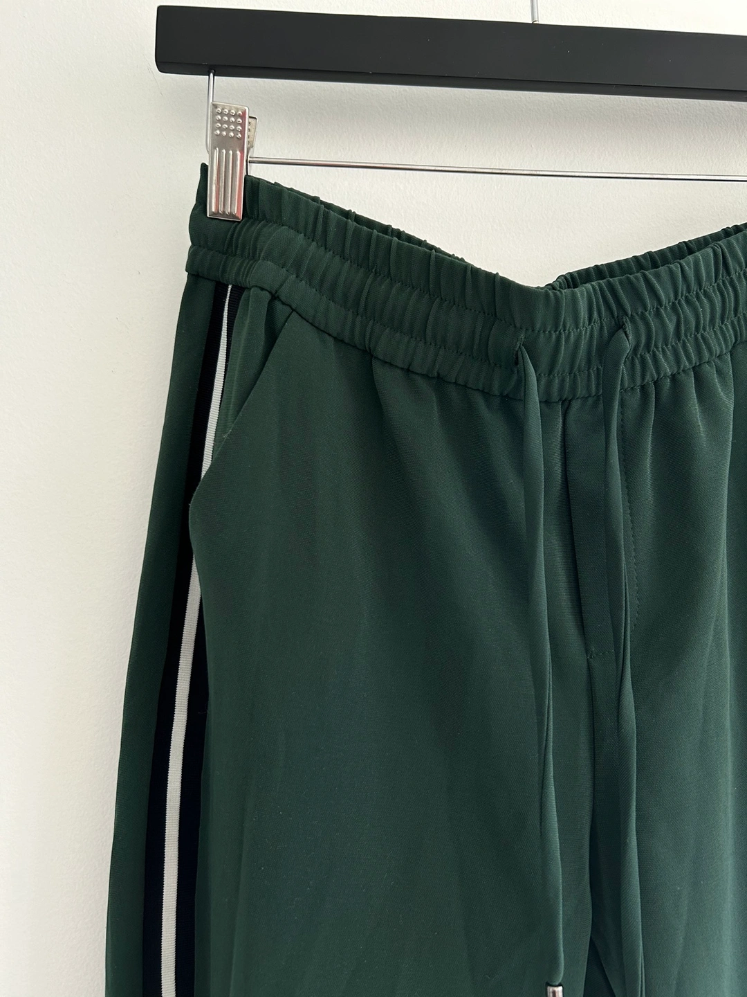 +Green joggers with black/ white stripe