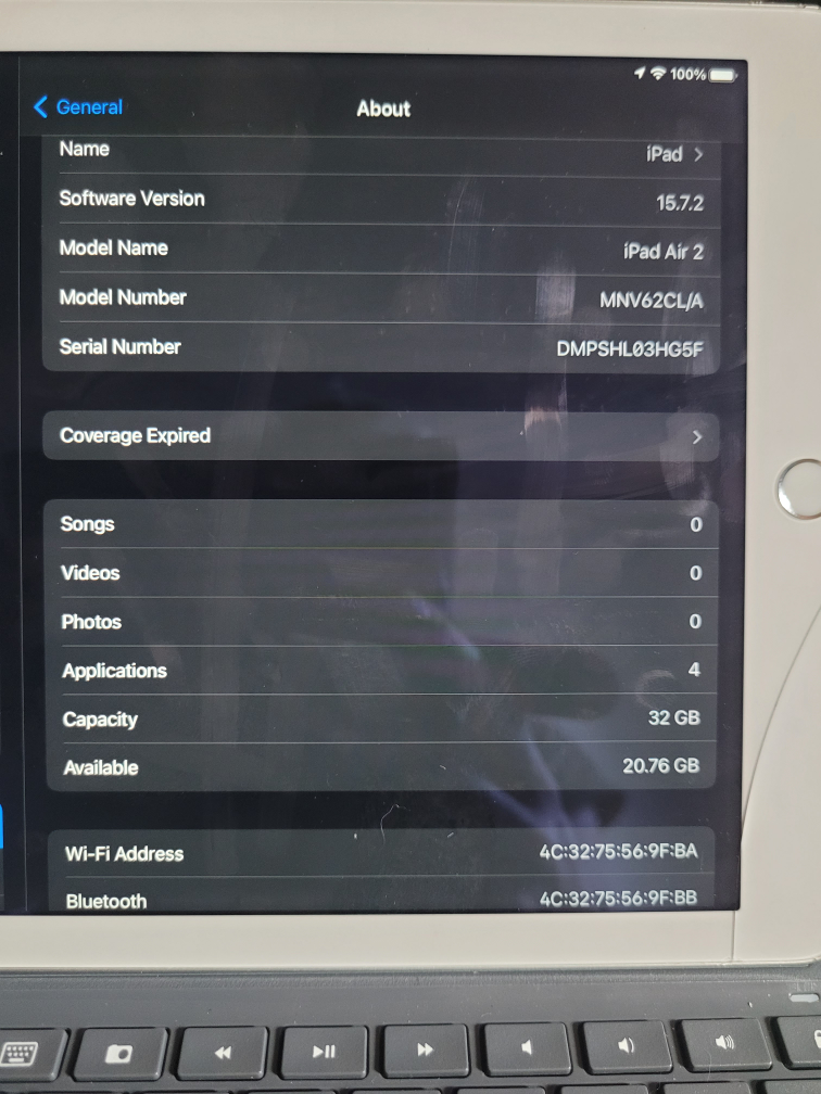 I’ve had my iPad for some time now and I honestly find myself barely using it. It definitely was an impulse buy and I’m ready to let it go. There's a small crack, but it's not on the veiwing screen as shown in one of the pictures. Also missing the stylists pen. Charging cord included. All software is up to date. 32GB