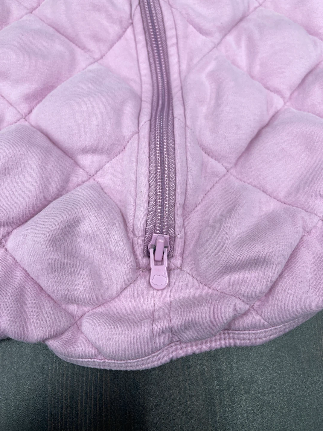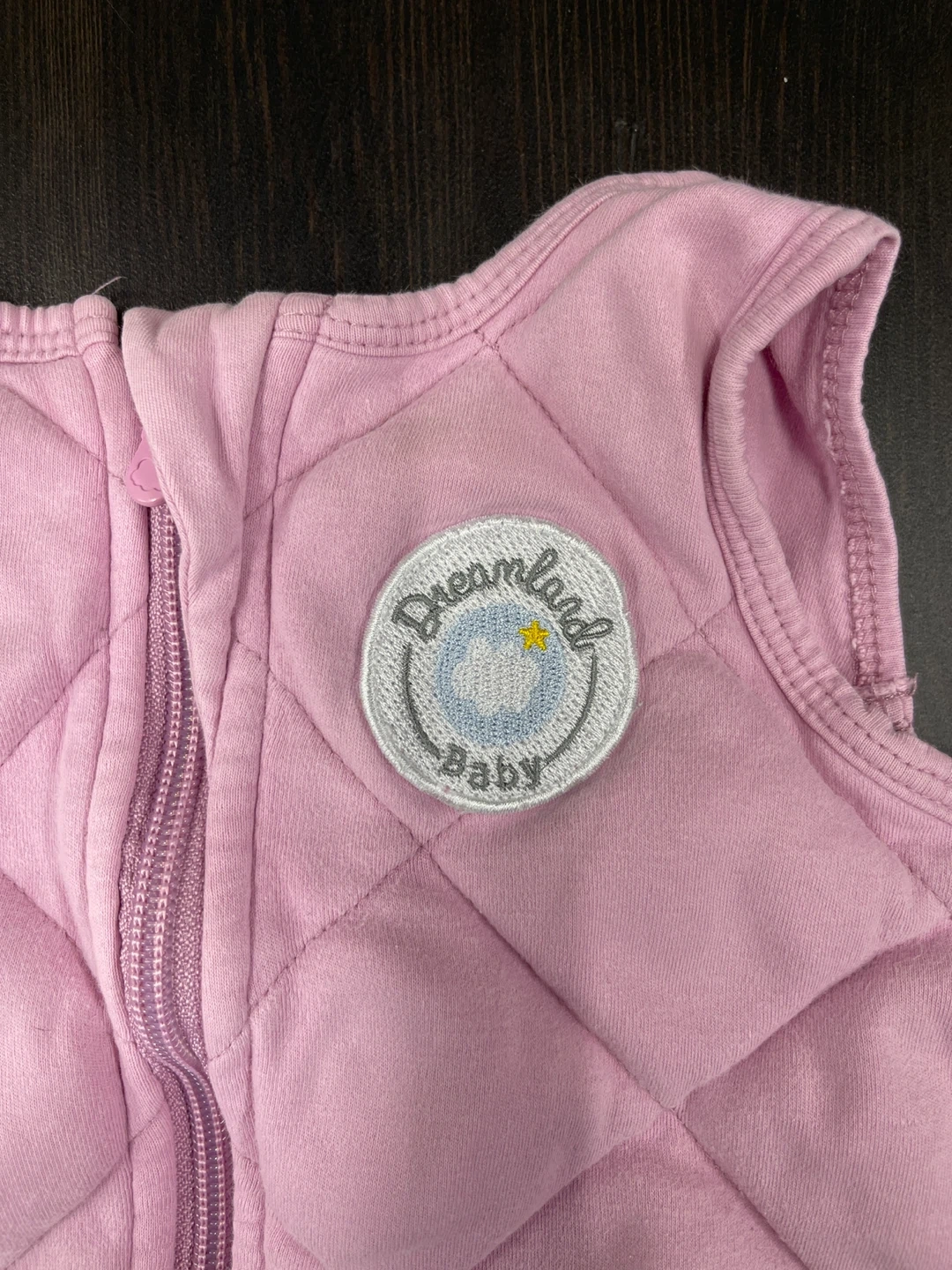 Here's a gently used Dreamland Baby weighted sleep sack in a lovely pink color! It features a quilted design and a convenient zipper closure. Perfect for helping your little one sleep soundly and comfortably.