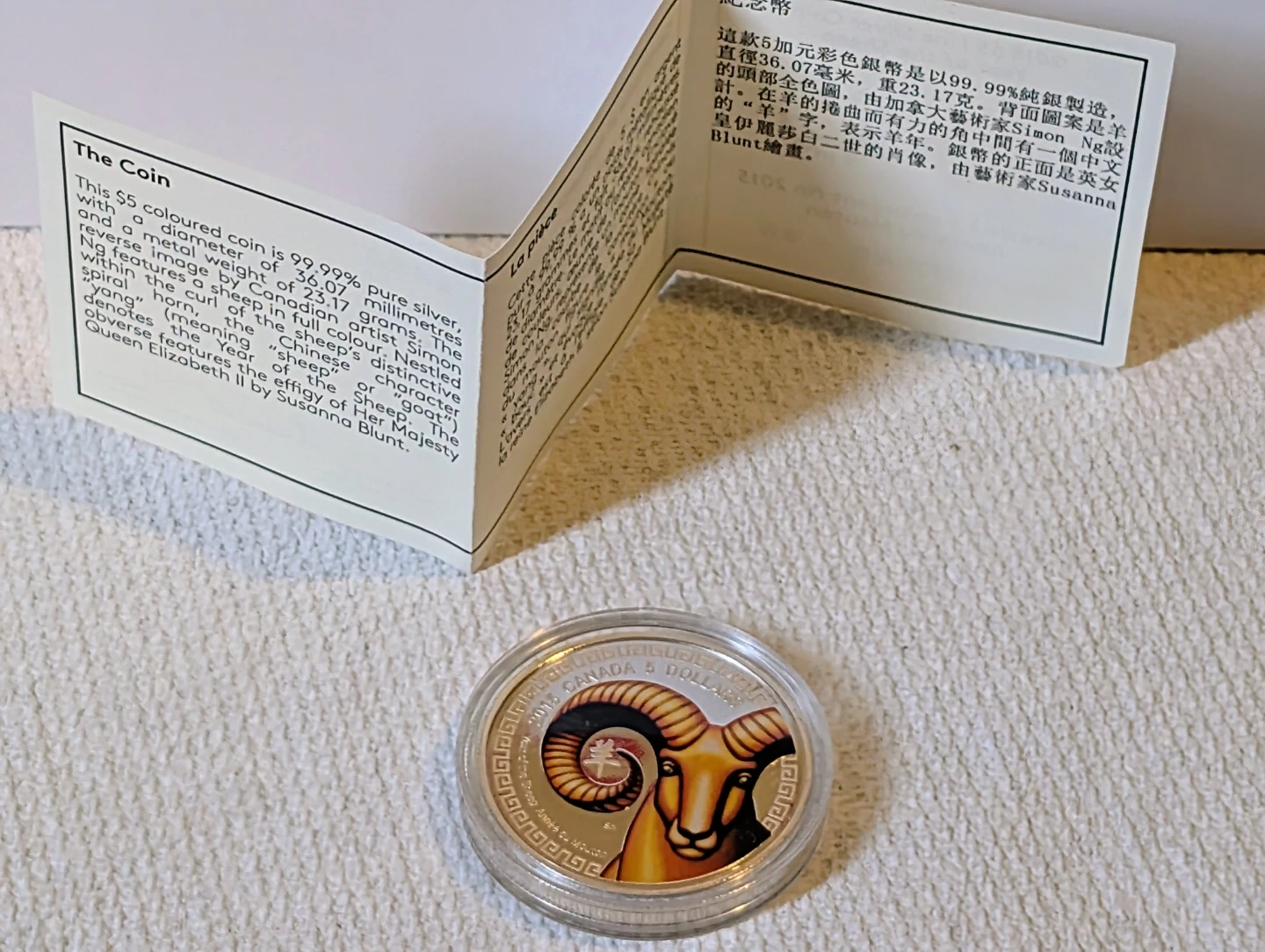 2015 $5 Fine Silver Coin - Year of the Sheep