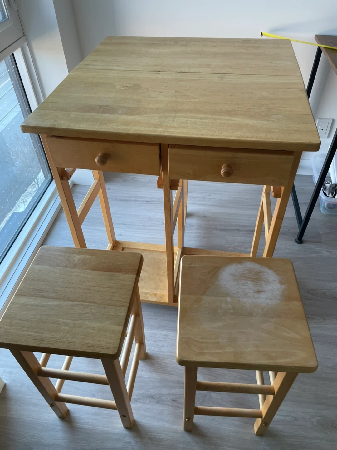 Wooden Kitchen Cart with 2 Stools and Drawers