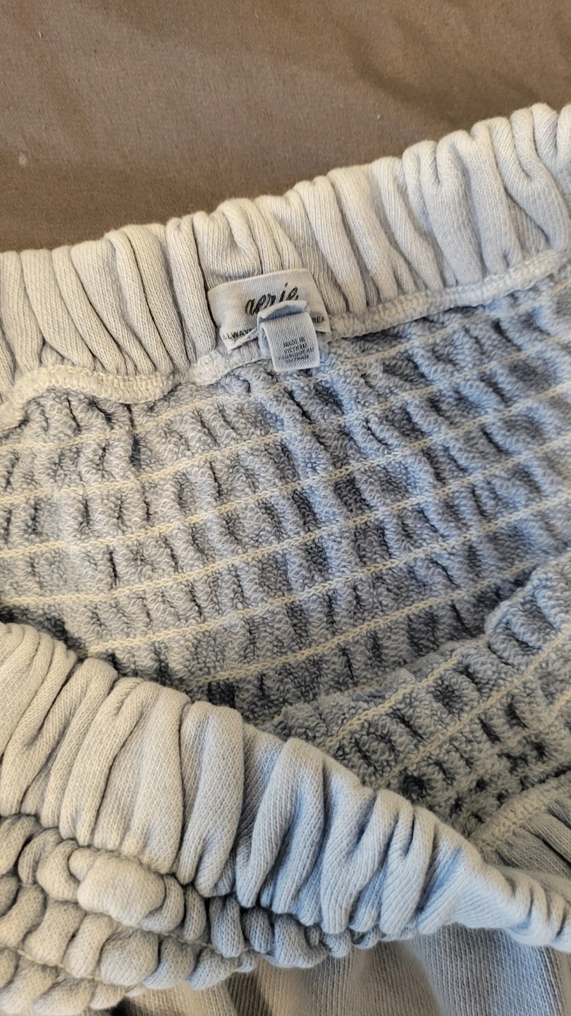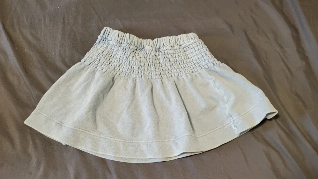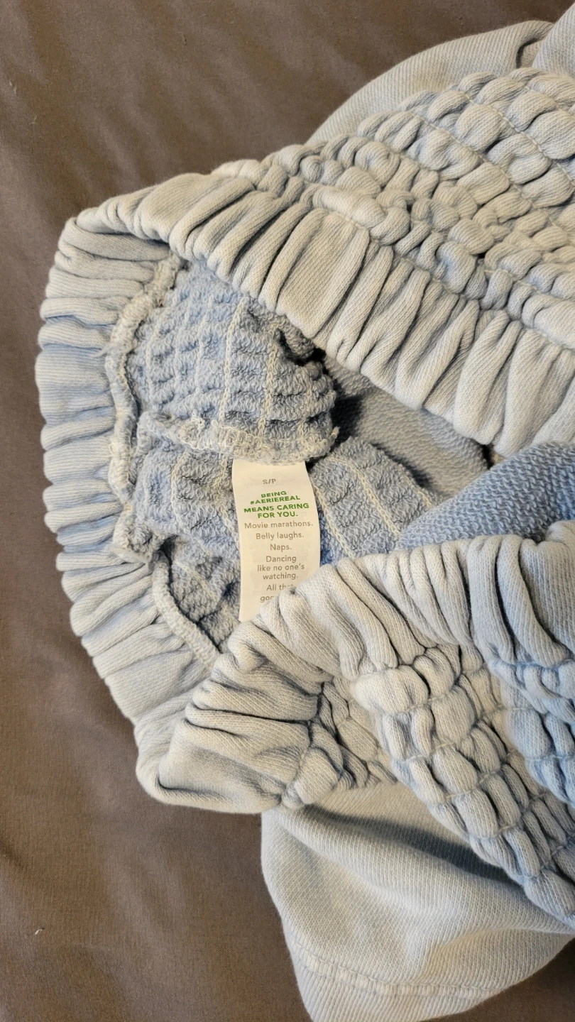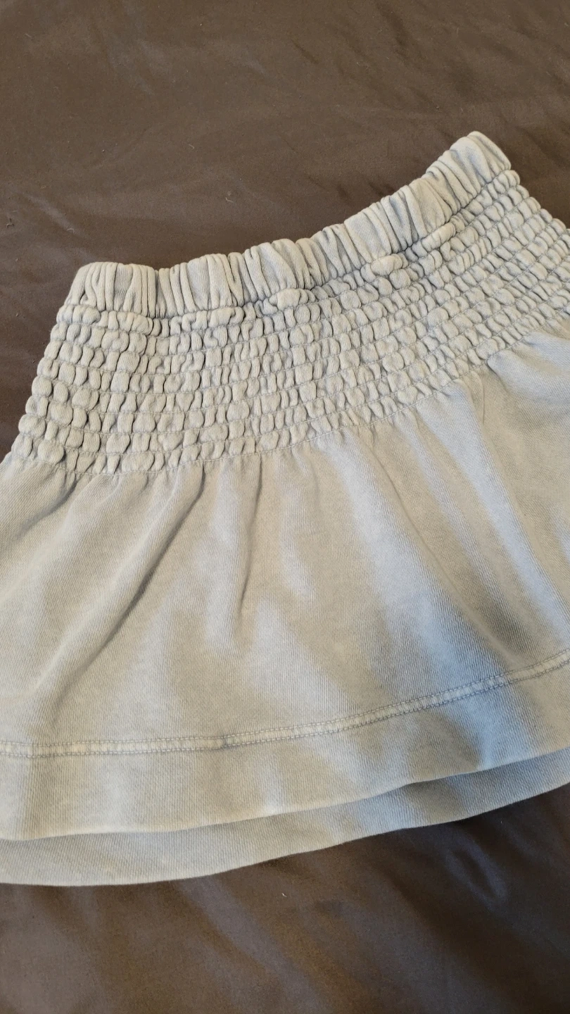 This Aerie mini skirt features a light blue colour and a smocked elastic waistband. It's a size S/P and made from a soft fabric. Perfect for casual wear!