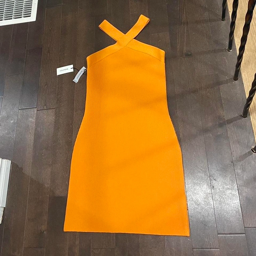 Aritzia babaton cris cross sculpt mini halter dress. Brand new with tags attached. Retailed for $124 after tax. This colour is not available on site anymore. Size medium. SCULPT collection.