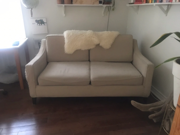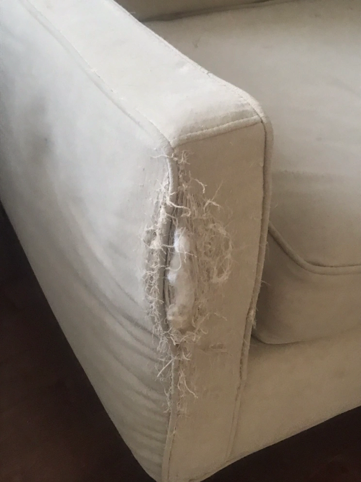 Free couch from a cat home! Arms are scratched. It is a good frame and cushion set and would be a fantastic reupholster project. I simply dont have time, but was considering doing this.