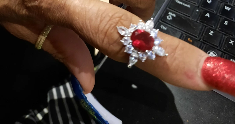 Genuine authentic solid sterling silver DIAMONELLE RUBY ring 6