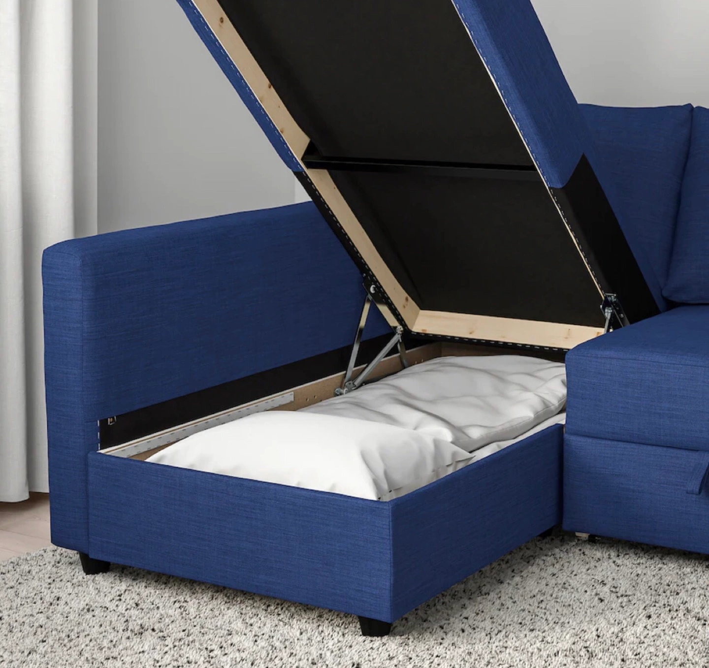 Corner sofa-bed with storage.