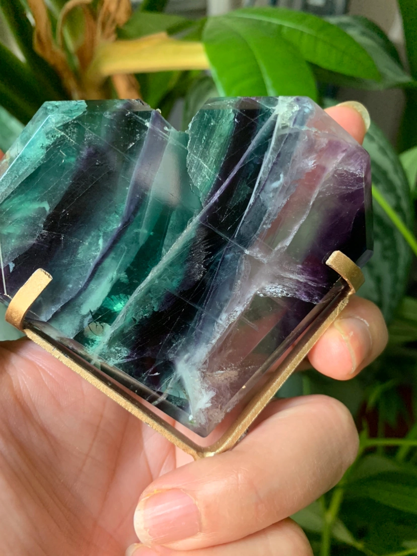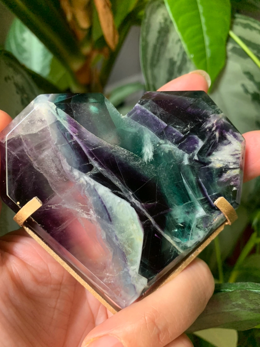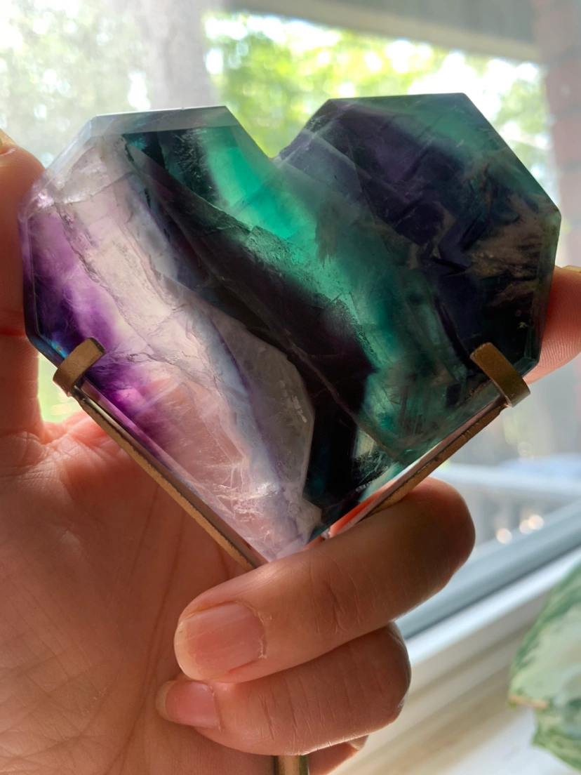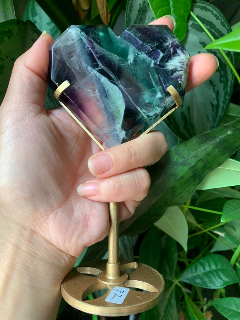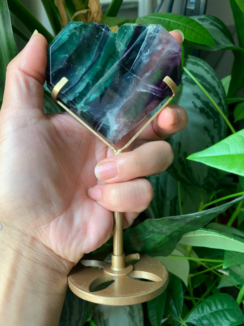Fluorite heart with metal stand | crystal