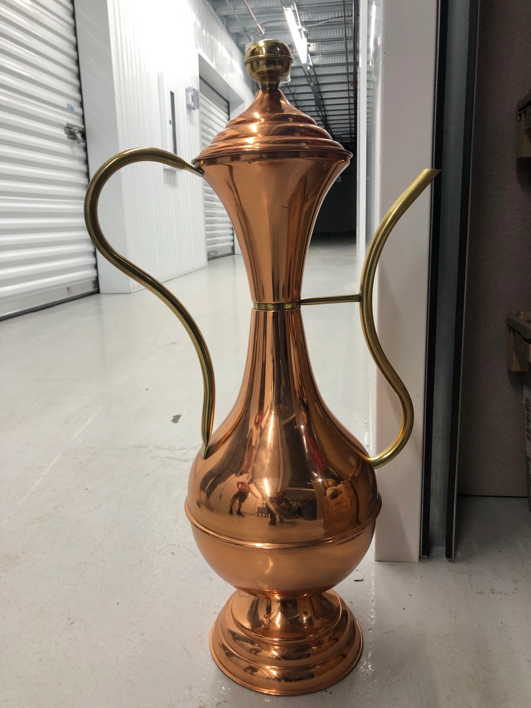 Tall Brass and Copper long spout pitcher with Lid