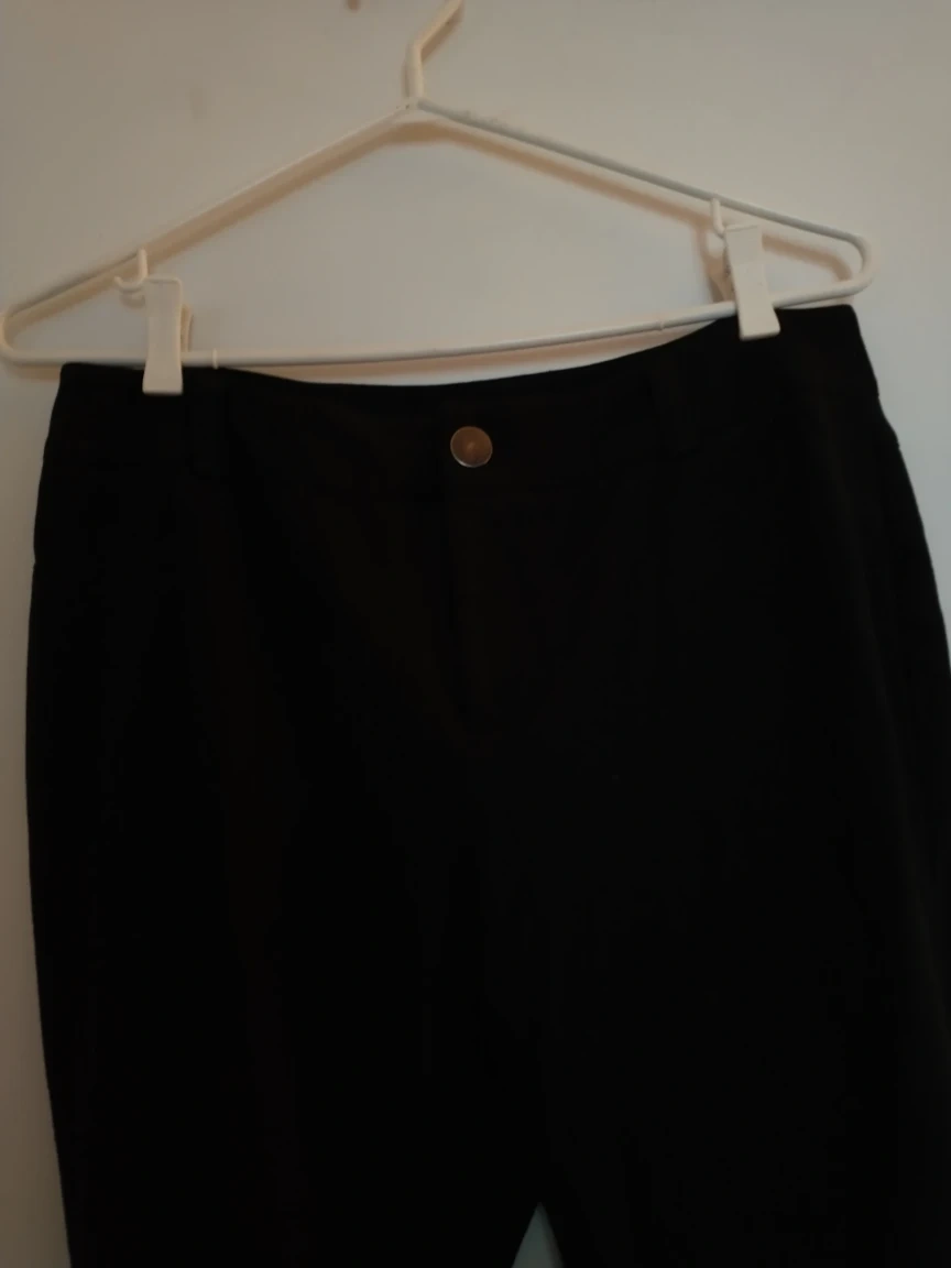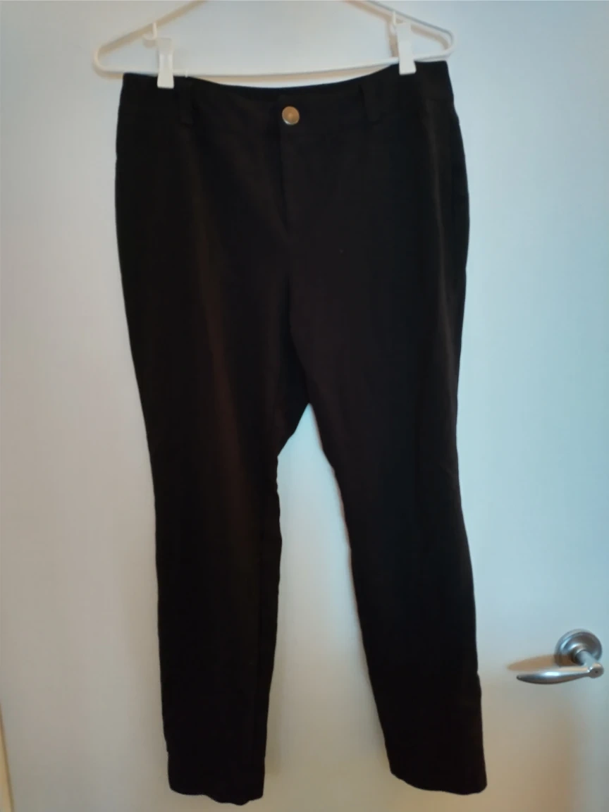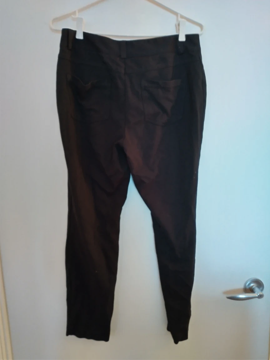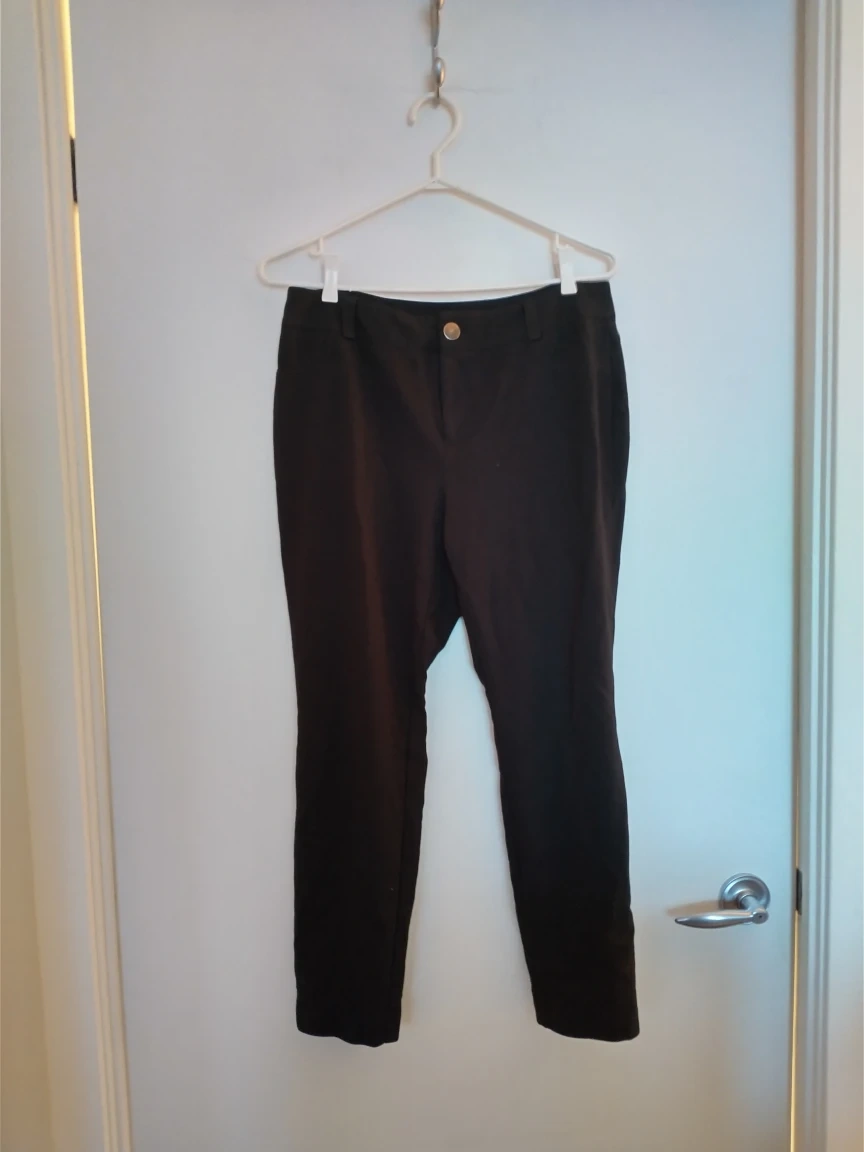 Comfortable stretchy petite black pants. Great for work or play. No front pockets but does have back pockets. Good used condition. No tears or holes or signs of wear.