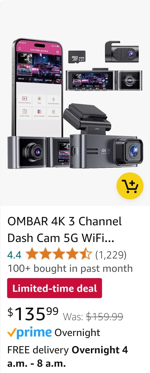 OMBAR 4K 3 Channel Dash Cam 5G WiFi GPS,Dash Cam