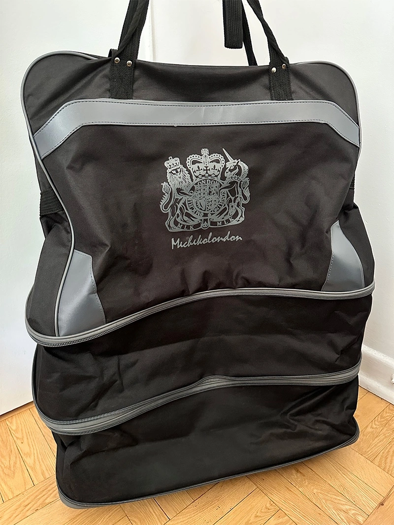 Very sturdy 3 tier expandable bag on 6 wheels. the second tier zipper is slightly damage but the damaged part is almost at the end of the closing zipper line so it doesn’t affect functionality. You won’t have any problems using it.