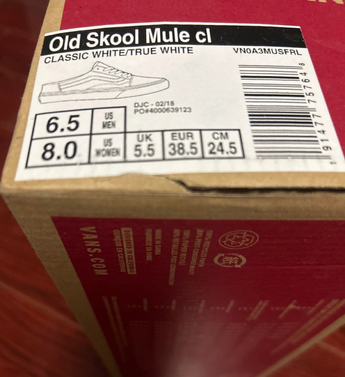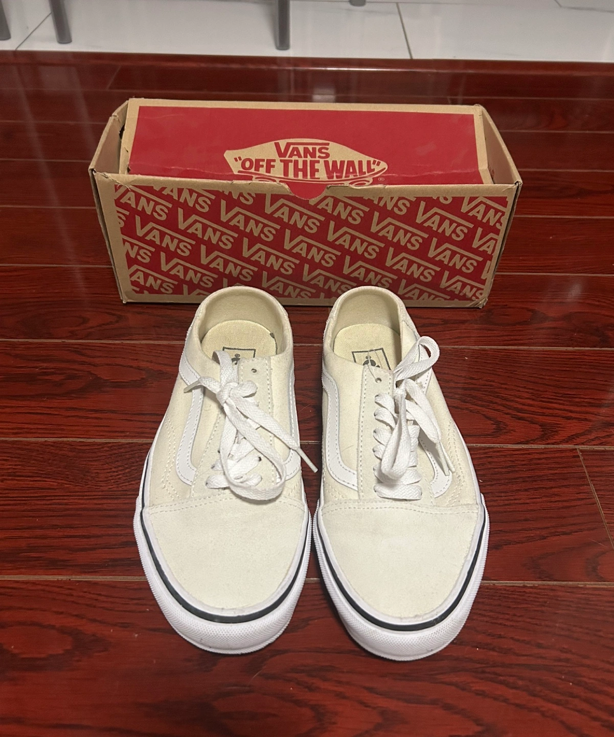 Worn only twice; in excellent condition; box included. “Vans' classic old skool mule is updated in a low-top suede style that stays true to the brand's signature details while adding a mule-inspired slip-on design with Sherpa lining for added dimension.”