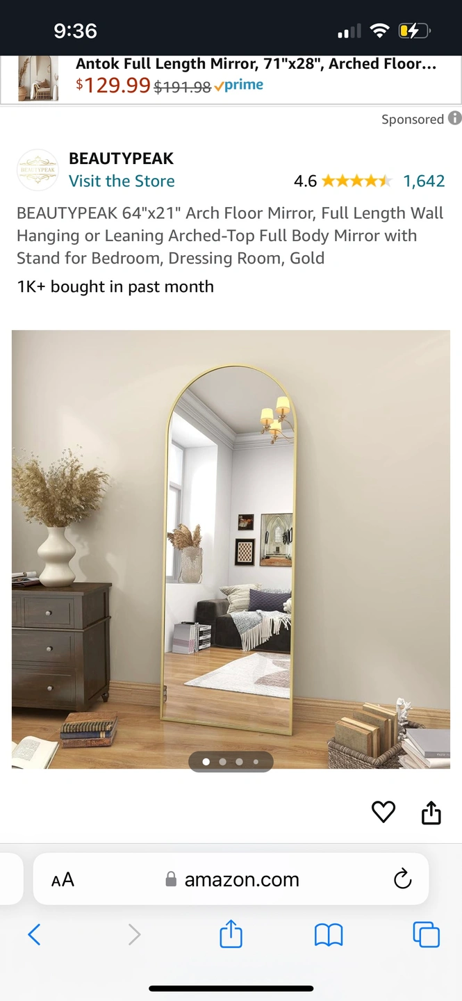 This arched floor mirror is in perfect condition and was purchased on Amazon for $150 earlier this year. Currently sold out on Amazon’s website. Open to offers!