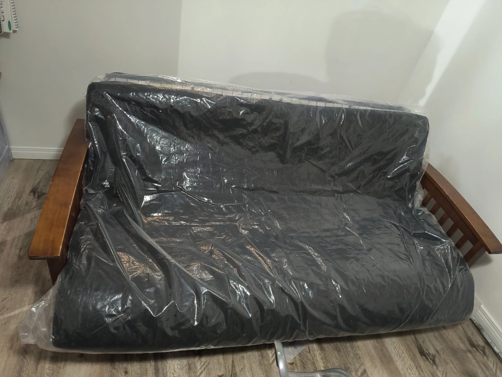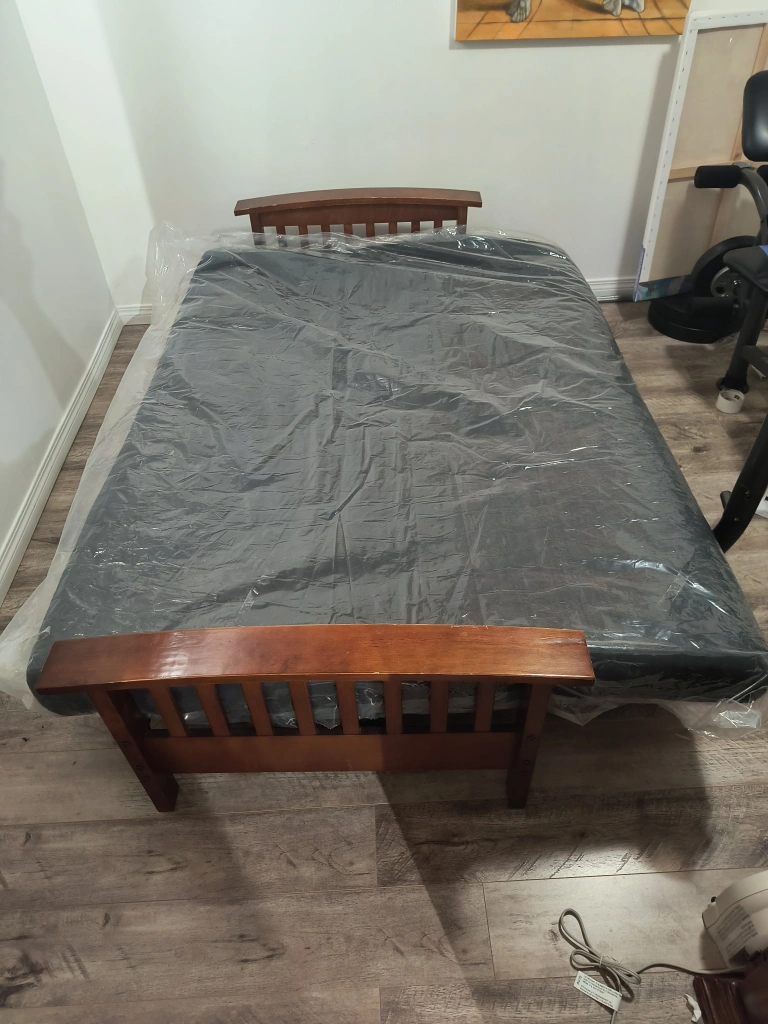 We are giving our futon sofa bed. We will dismantle the 2 wood frame on both side to make it easy for you to transport.