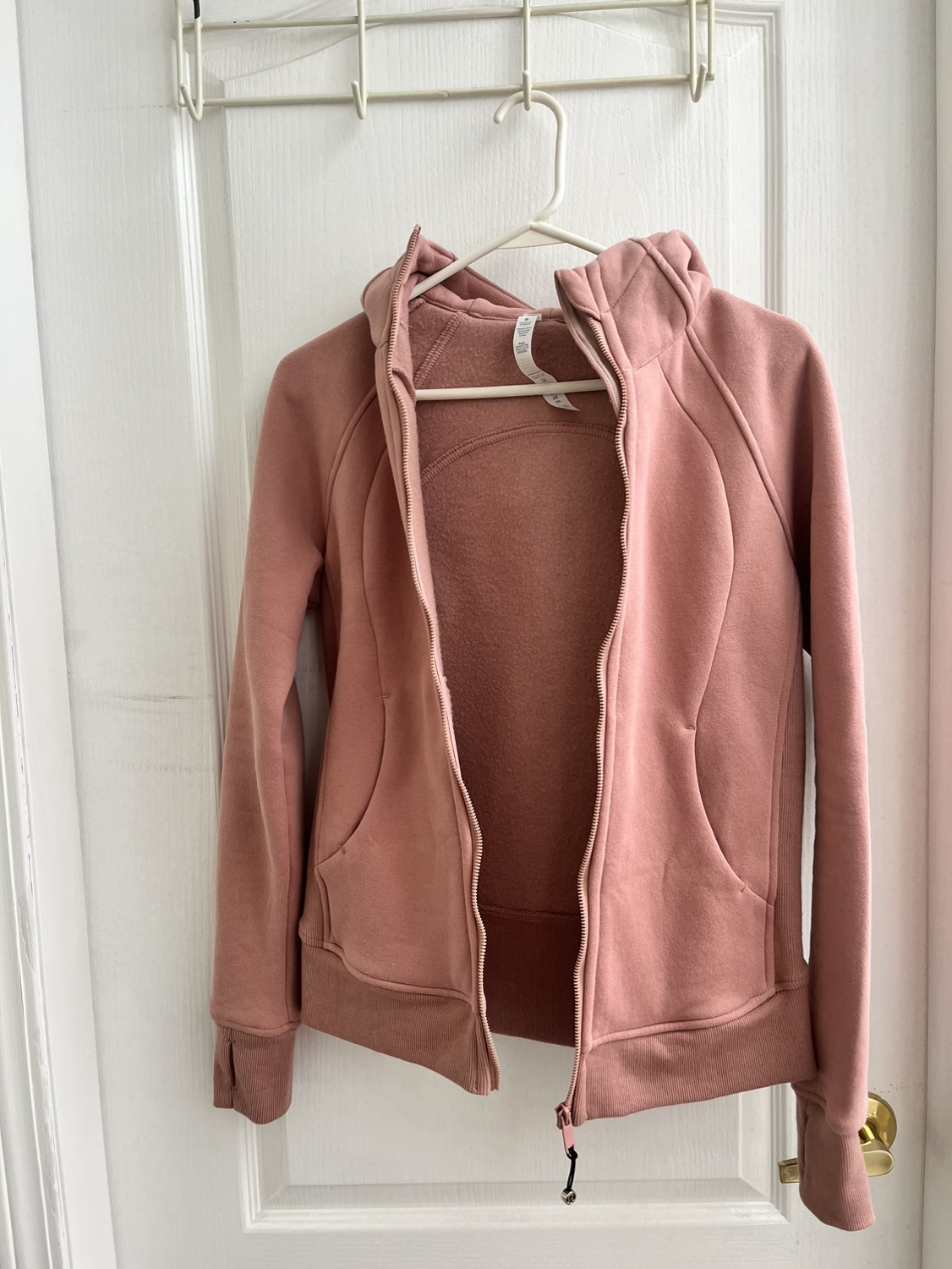 Very nice peachy pink colour lululemon full zip scuba. Size 6.
