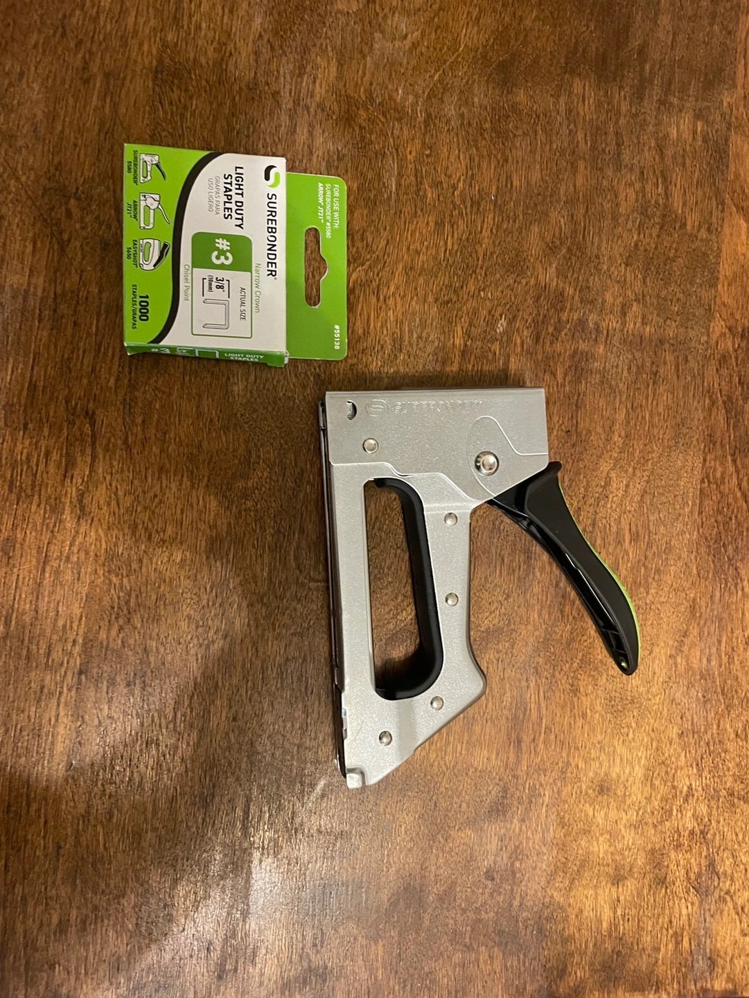 I will give away a construction stapler for stretching canvases onto a stretcher and a small stretcher, as well as paper clips.