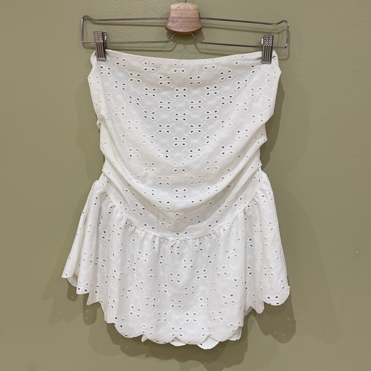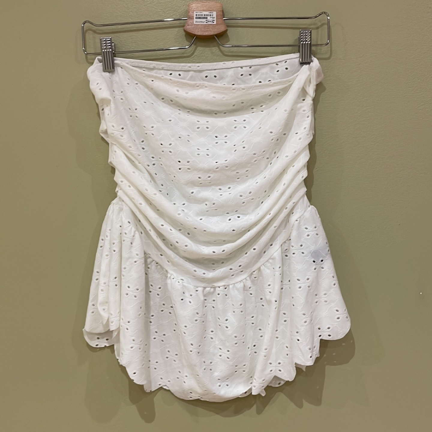 Pre-loved SHEIN embroidered ruched ruffled tube top. Kindly note too is partially see-thru as per design. Top in perfect condition!