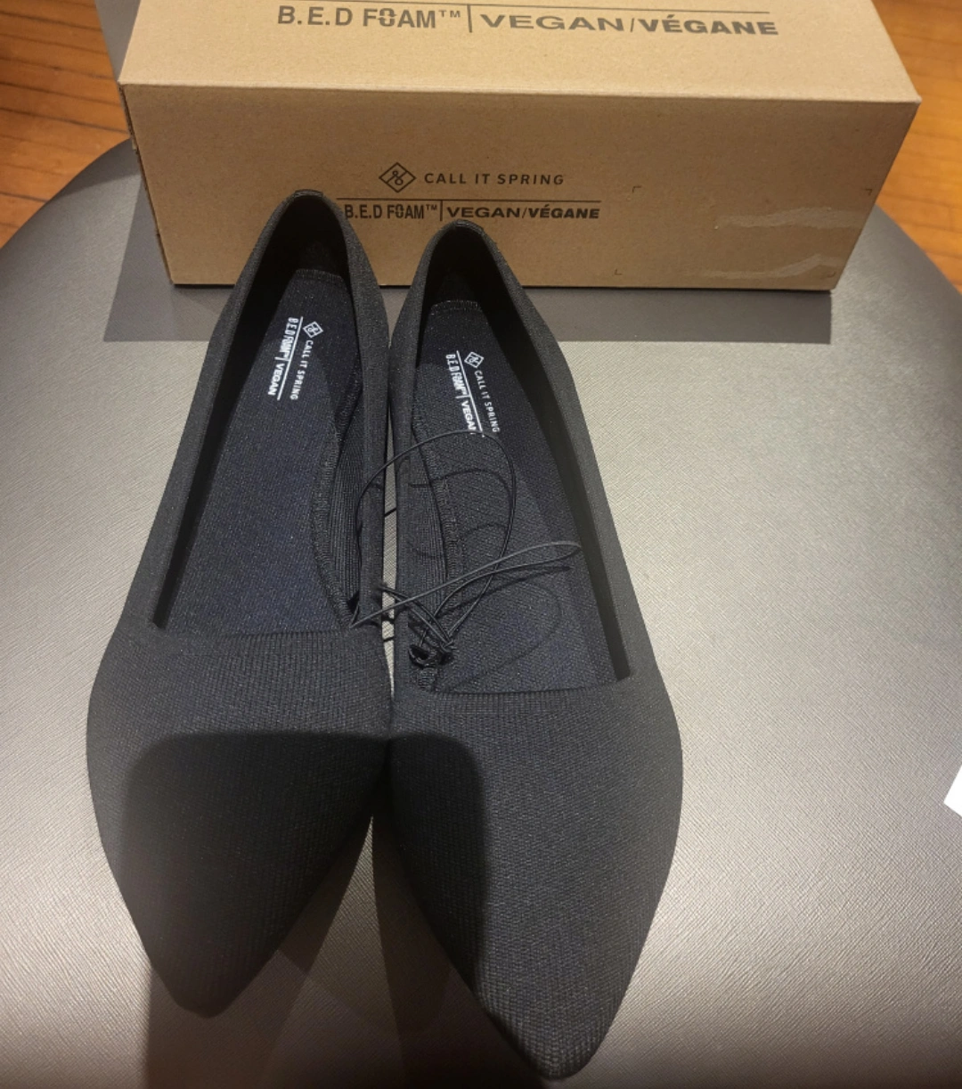 Brand new in box. Features: Pointed Toe A-line Stretch Knit Upper Flat Outsole B.E.D Foam™ Comfort Technology