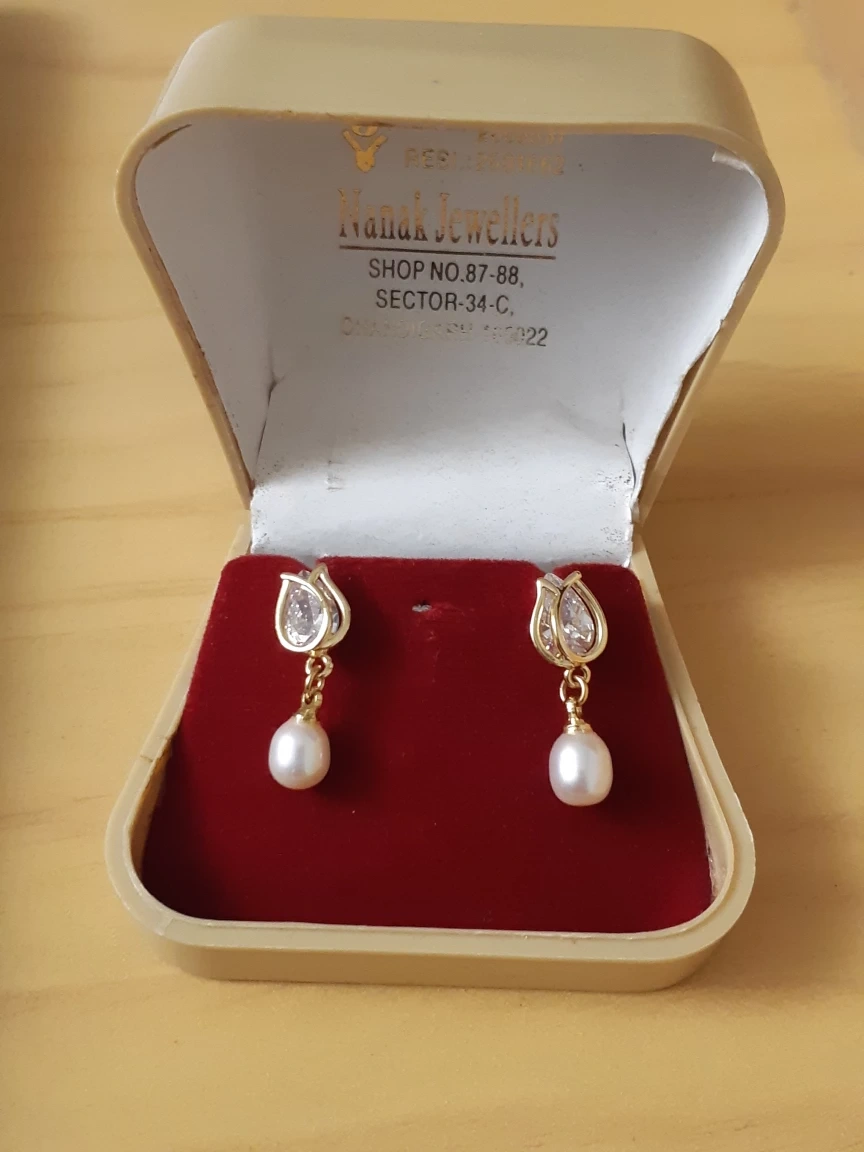 Gorgeous pearl drop earrings. Purchased on a trip. And never really used them because they are not my style.
