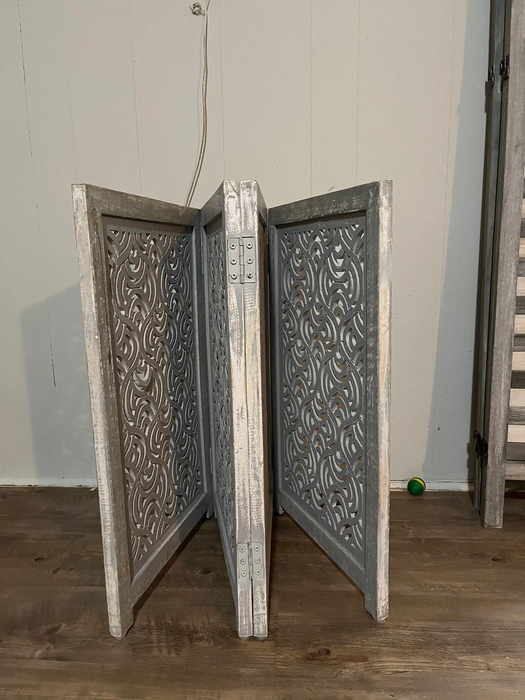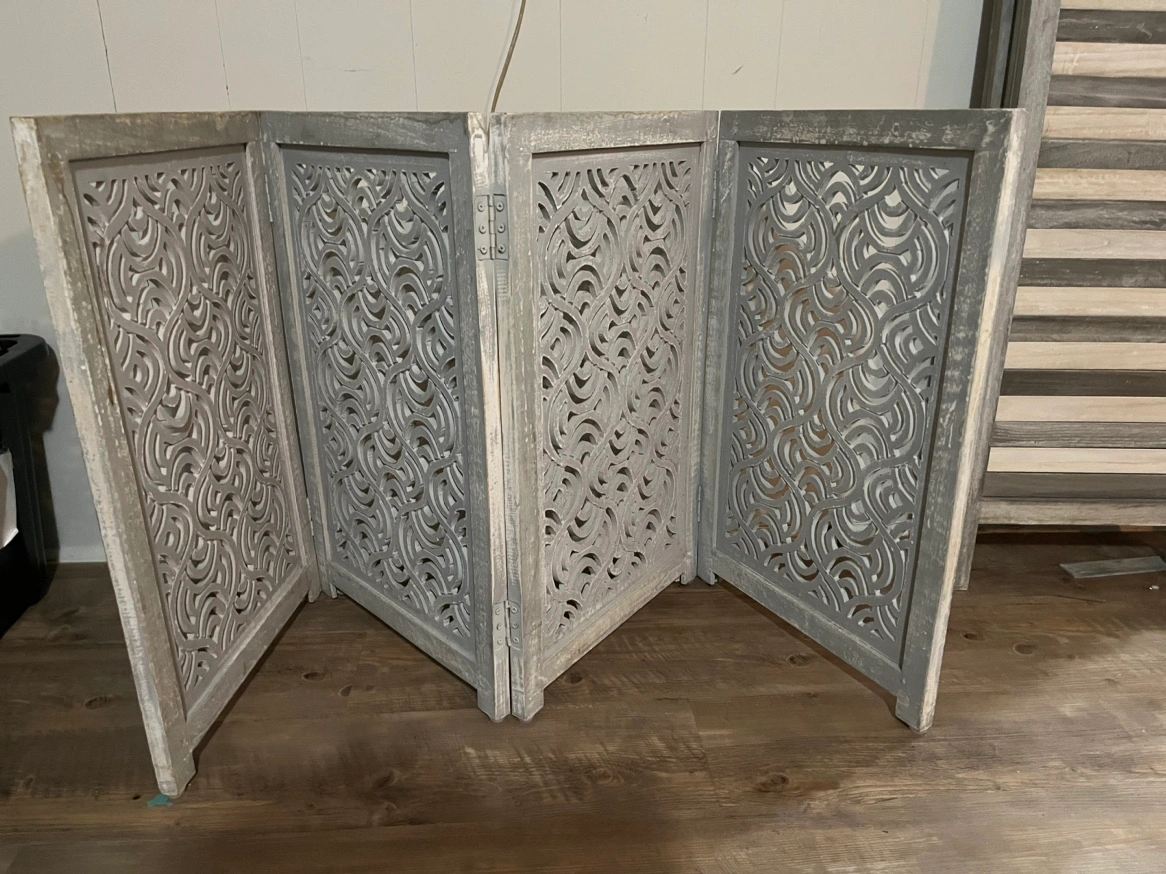 This perfect room divider is half the size of a normal one. You can see the photo for size reference. It’s really beautiful and has a unique design.