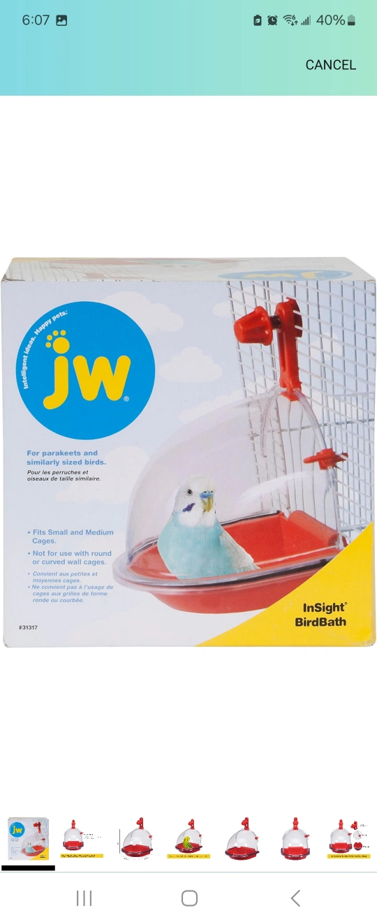 *For parakeets and similarly sized birds