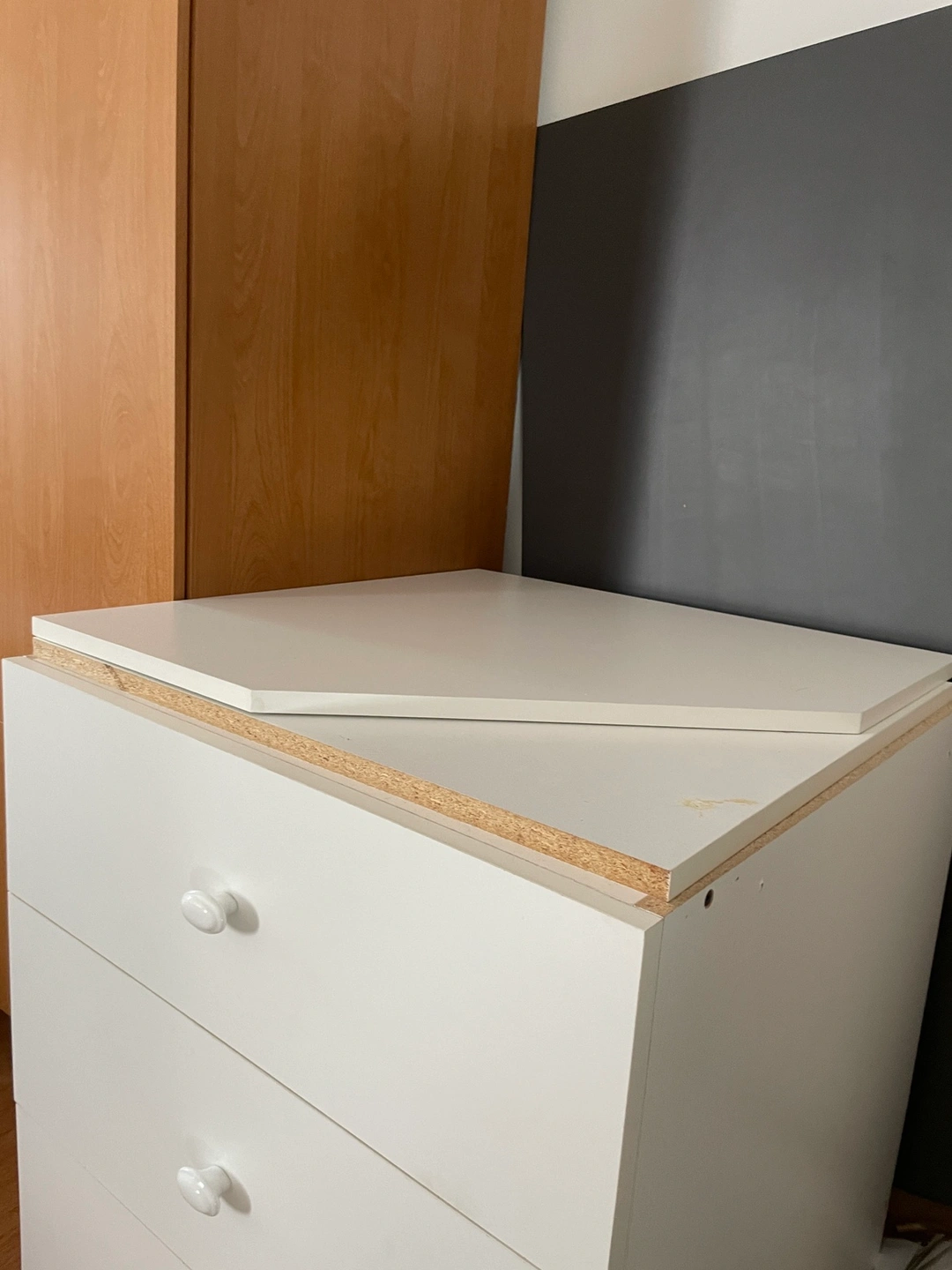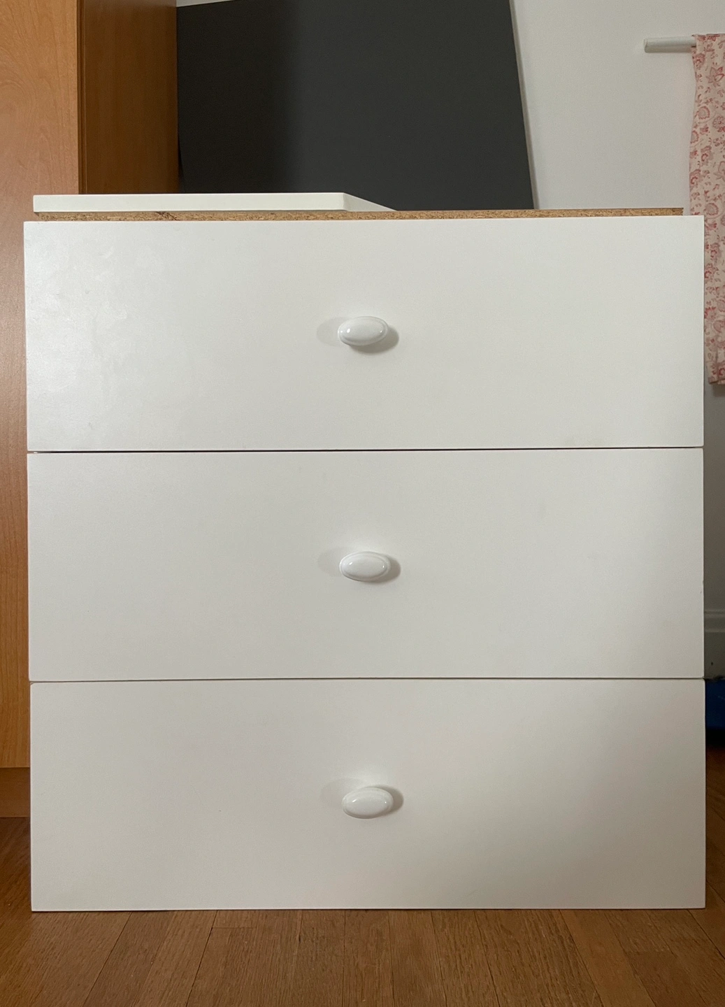 Deep 3 drawer unit plenty of storage space. Handles can be switched out. Don’t have a top for it but what I have been using is pictured.