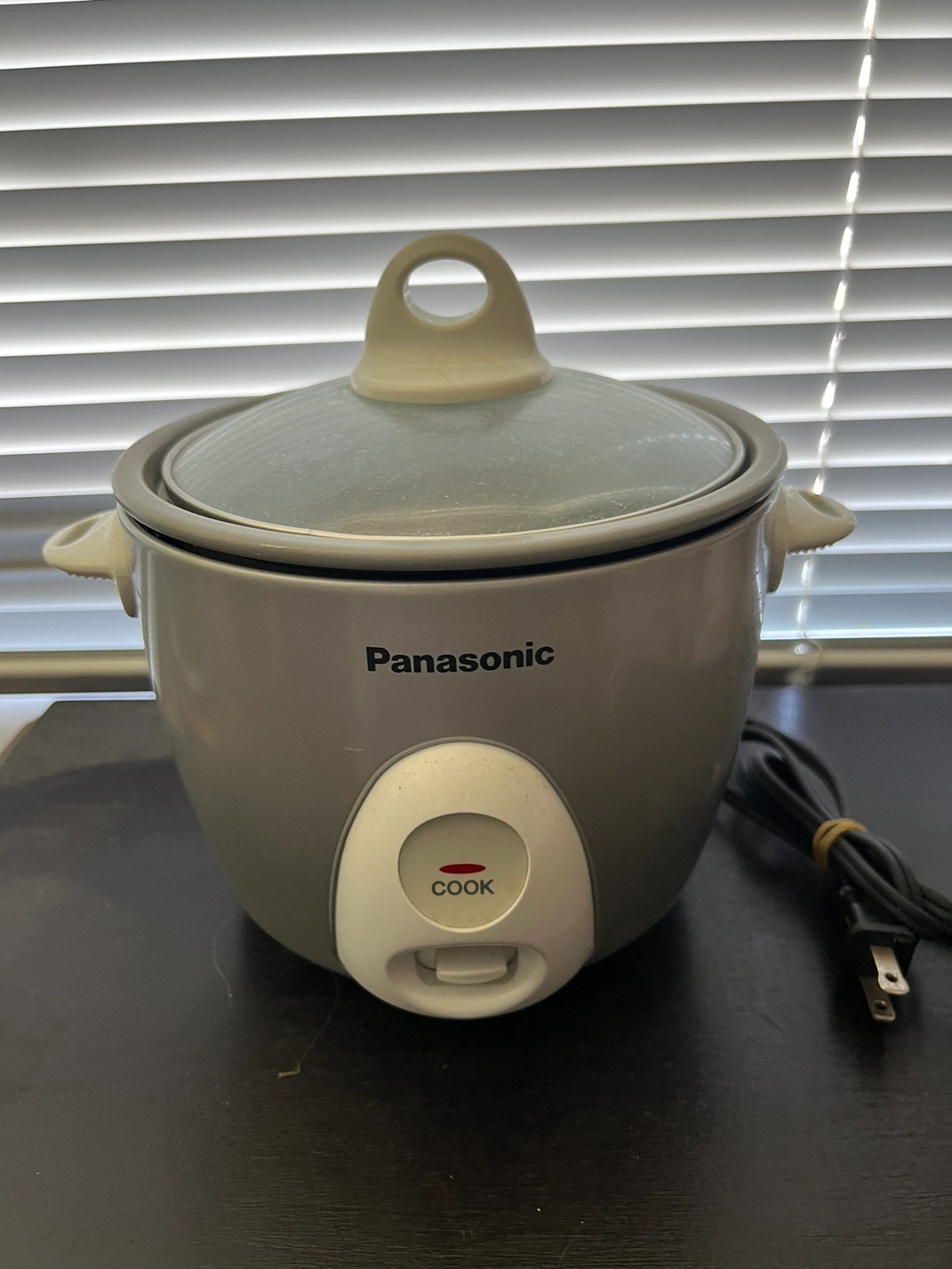 The smaller Panasonic rice cooker indicates 3 cups or 0.6 litre