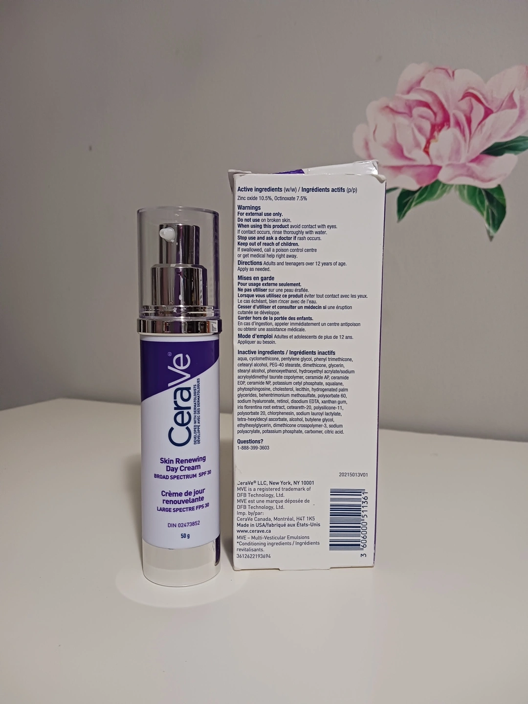 CeraVe Skin Renewing Day Cream is a non-comedogenic, anti-aging moisturizer with SPF and encapsulated retinol that is gradually released into your skin, reducing the appearance of fine lines and wrinkles without irritation.