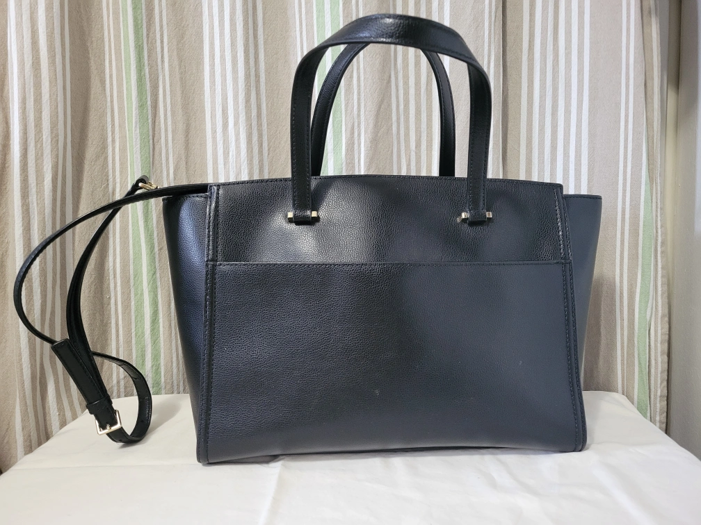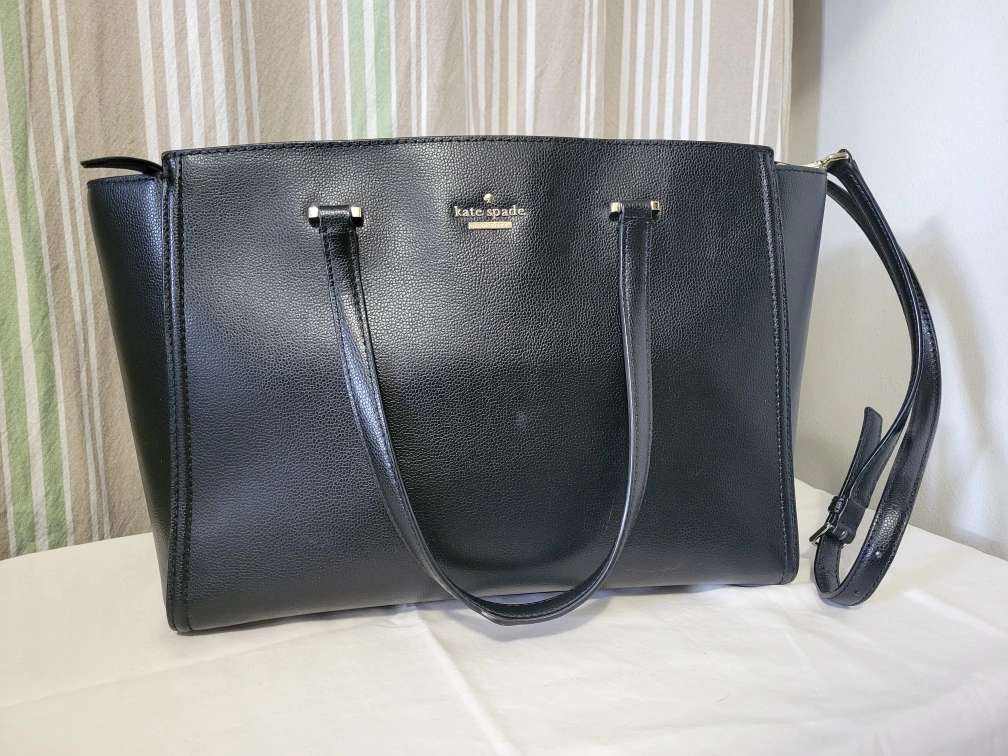 In good condition, only issue is that small rubber-ish tear on one of the handles. It was shown on the video, other than that. It's perfect for everyday use if you need a big stylish bag.