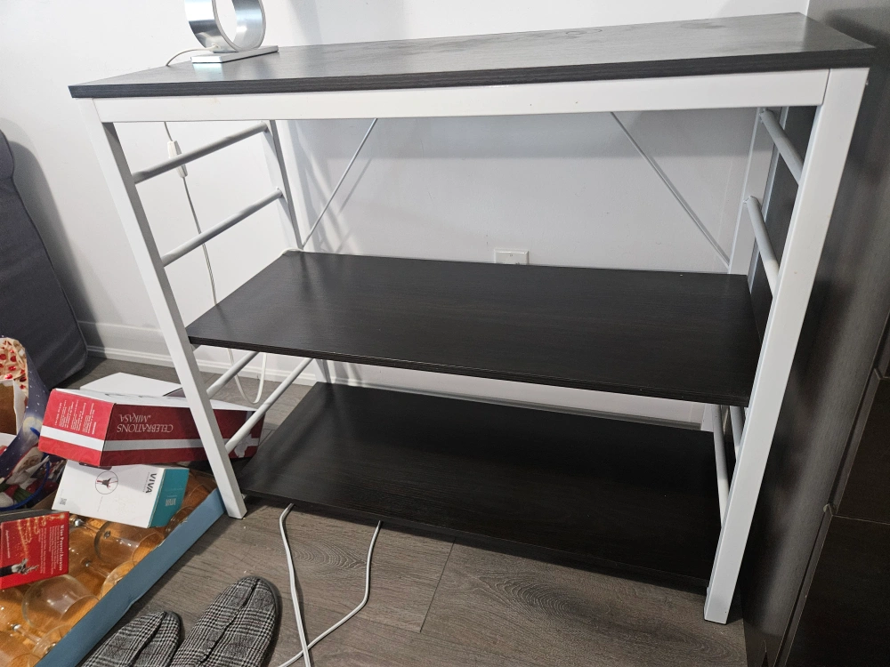 Great little shelf thing. We used it in our kitchen the last couple years, great condition, just a few minor issues on the top, see photos. It can also be taken apart to move easier. 25obo